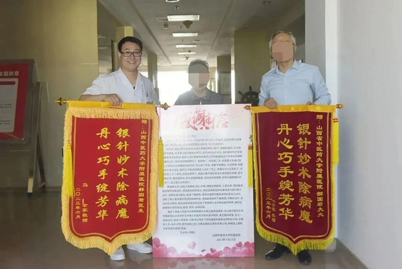 “银针妙术除病魔,丹心巧手绽芳华。”日前,患者马大娘和家人带着锦旗和感谢信来到山西省医院协会副会长单位——中国中医科学院西苑医院山西医院 山西中医药大学附属医院,向推拿二科主治医师郝国君表示感谢。马大娘说:“在治疗中,我亲身体会了郝国君大夫的职业精神,他展现出的医疗技术、医德医风值得弘扬!我必须为医院有这样的好医生给予点赞!”