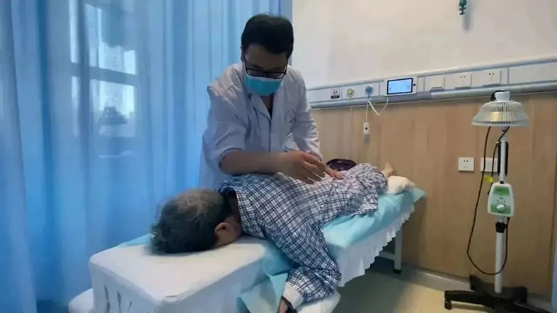 5月30日,马大娘住进了推拿二科病房。入院时,她精神萎靡,腰部疼痛难忍,不能翻身,日不思食、夜不能寐,情绪也显得有些焦虑。郝国君详细地向患者及家属分析病情并制定了初步的诊疗方案,在缓解患者紧张焦虑的情绪,舒畅情志的基础上,进行对症治疗。