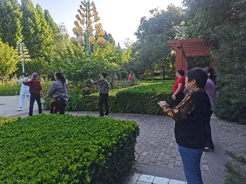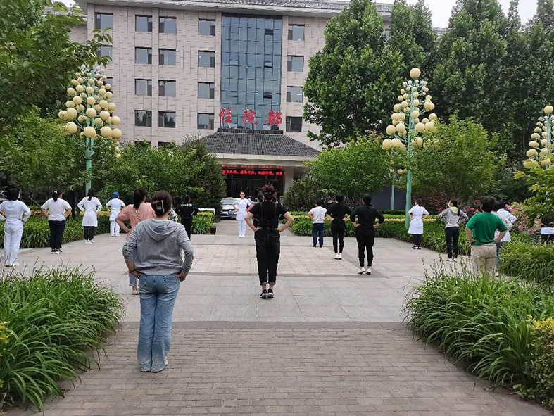 近段时间,每到傍晚时分,山西省医院协会理事单位——新绛县人民医院后花园总有一群人练习中医拍打养生操。