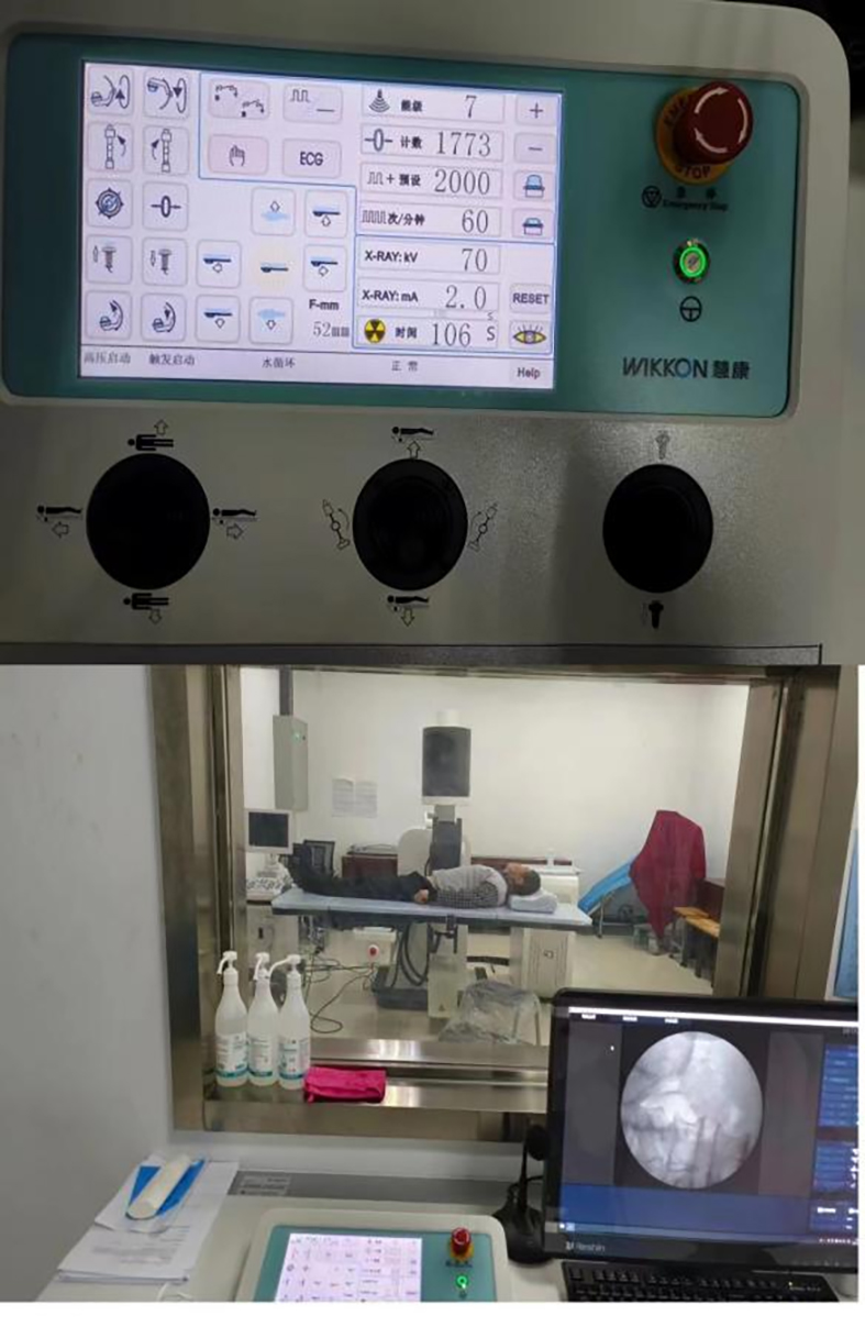 该例患者因腰背部疼痛剧烈来院就诊,急查腹部CT显示输尿管结石,结石位于右侧输尿管上段,大小约6毫米。在程佳医生的指导下,车梦姣技师在X线辅助下,成功找到结石的位置,实施了体外冲击波碎石治疗。 治疗结束后,患者无明显不适,疼痛缓解。
