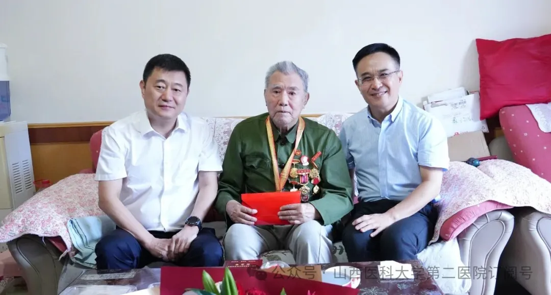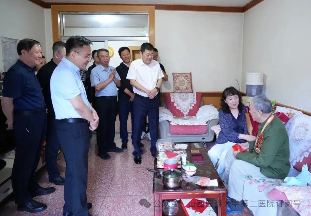 为纪念中国人民抗日战争暨世界反法西斯战争胜利80周年,8月29日,山西省医院协会副会长单位——山西医科大学第二医院党委书记安健带领全体班子成员,专程看望慰问抗战前参加革命工作的医院原副院长张培德,并向其颁发“中国人民抗日战争胜利80周年”纪念章。