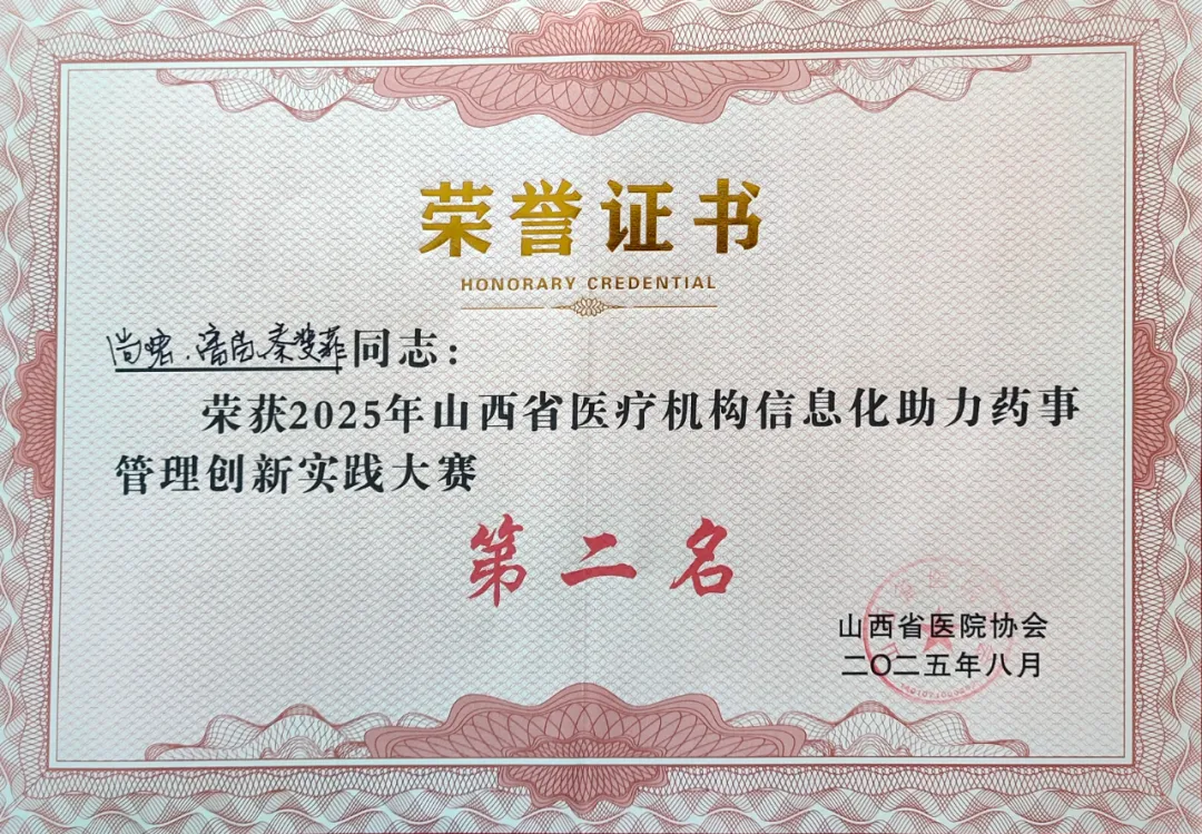 近日,山西省医院协会常务理事单位——阳煤集团总医院药学部尚珺副主任药师携案例,在山西省医院协会举办的2025年山西省医疗机构信息化助力药事管理创新实践大赛上,凭借清晰的问题导向、扎实的数据支撑与创新的AI技术路径,荣获第二名好成绩,将与长治市人民医院任俊丽、山西省人民医院窦晓静一起代表山西省参加区域赛。