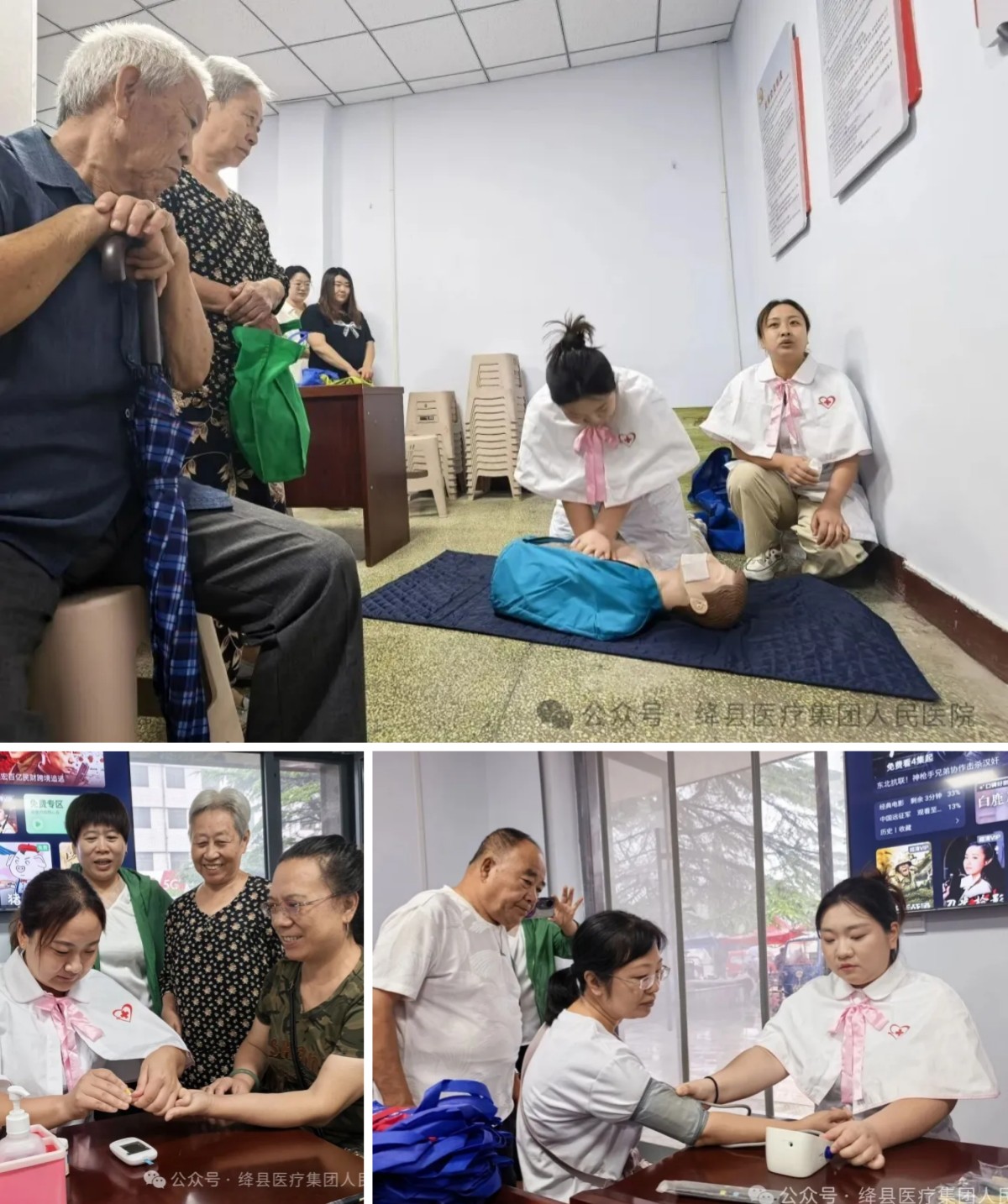 护理人员演示了胸外按压、人工呼吸等急救技能的正确操作方法。居民们在医护人员指导下,进行了实际操作练习,掌握了基本的急救技能。