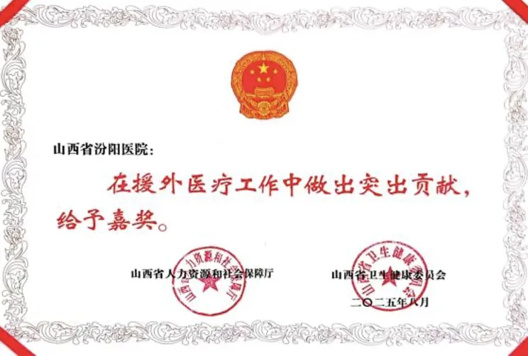 8月21日,中国(山西)援外医疗队派遣50周年纪念活动暨援外医疗队出征仪式在太原举行。会议总结了山西省援外医疗取得的成绩,对为援外医疗作出贡献的优秀集体和个人进行奖励。山西省医院协会常务理事单位——山西省汾阳医院在援外医疗工作中作出突出贡献,给予嘉奖。这一荣誉是对山西省汾阳医院援非医疗工作的高度肯定。