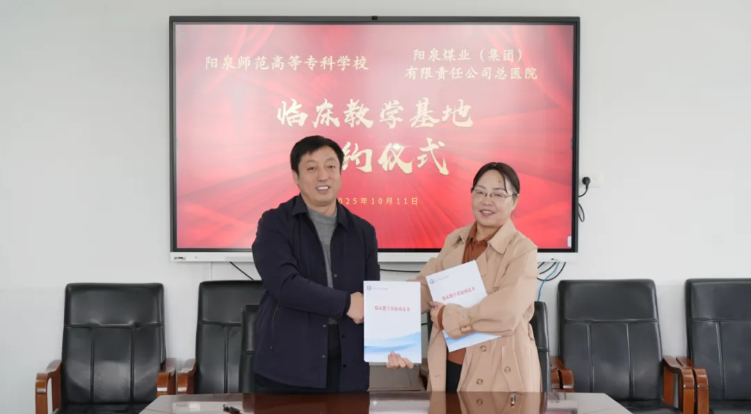 10月11日,阳泉师范高等专科学校(以下简称阳泉师专)与山西省医院协会常务理事单位——阳泉煤业(集团)有限责任公司总医院(以下简称阳煤集团总医院),就康复治疗技术专业共建临床教学基地,举行签约暨授牌仪式。阳泉师专党委委员、副校长赵瑞玲,阳煤集团总医院副院长王振钧出席活动。