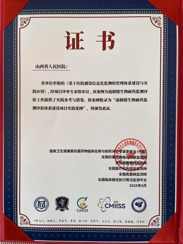 10月12日,“遏制微生物耐药监测评价体系建设项目”典型案例征集结果揭晓。山西省医院协会副会长单位——山西省人民医院医院感染管理科主任李临平团队申报的“基于医院感染信息化监测的管理体系建设与实践应用”案例,从全国400余份案例中脱颖而出。