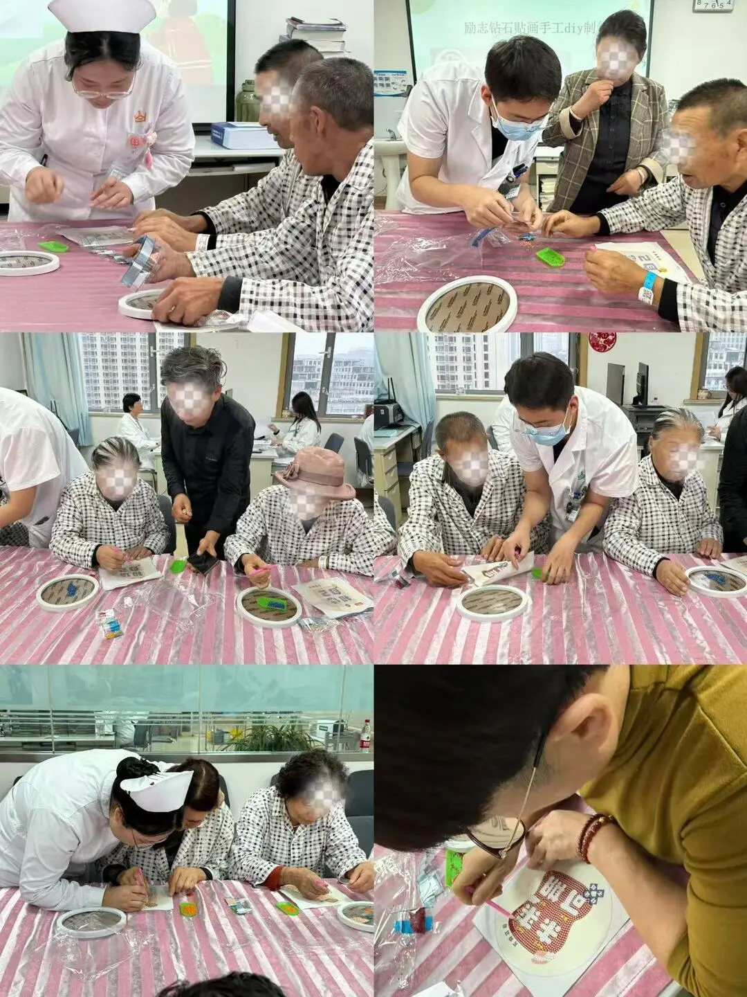 在护理人员的指导下,十余位在院患者投入钻石贴画手工制作中。他们拿起工具,拼凑美好,并不时分享贴画技巧、交流生活趣事,低声笑语与温柔交谈交织。活动尾声,患者和家属纷纷表示:“从没想过,这样一场简单的手工活动,能带来如此的放松和舒适。这不仅是一个个手工作品,更是医护人员与我们之间爱的传递。”