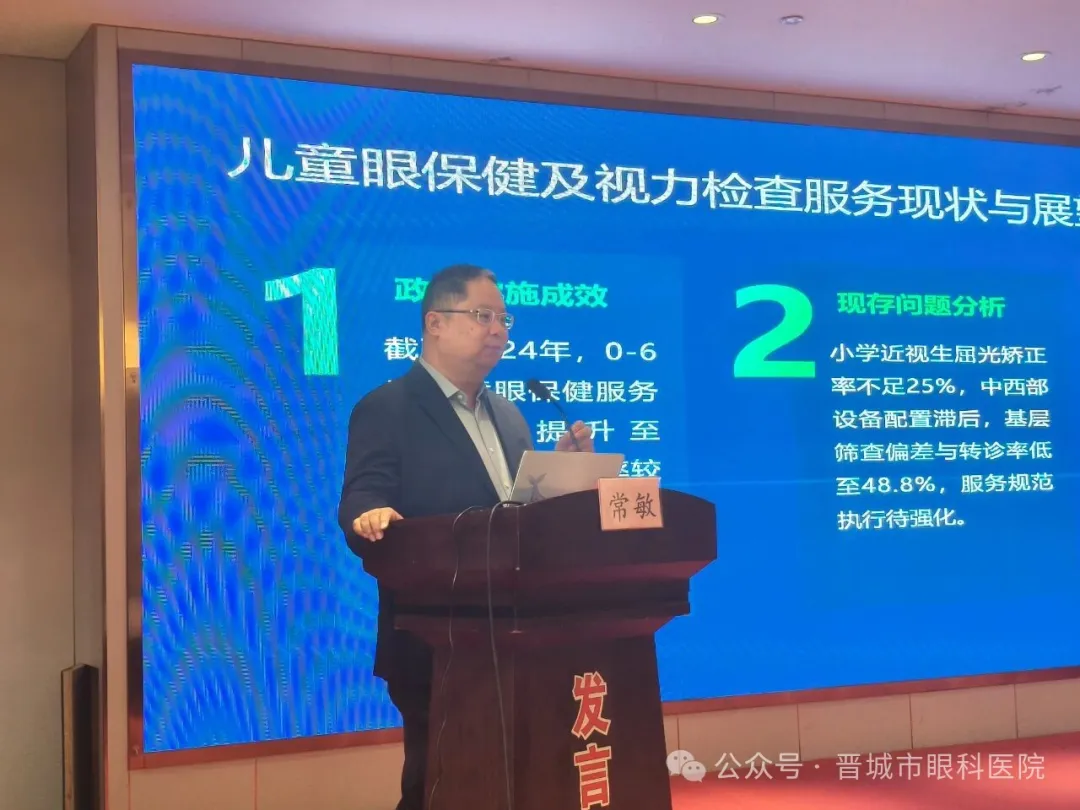 山西省眼科医院党委副书记、院长周国宏讲话,他强调基层眼科技术提升与儿童眼健康保护对“健康山西”建设具有重要意义,全体参会者要以此次会议为平台,多交流强基础,共促儿童光明视界健康成长。