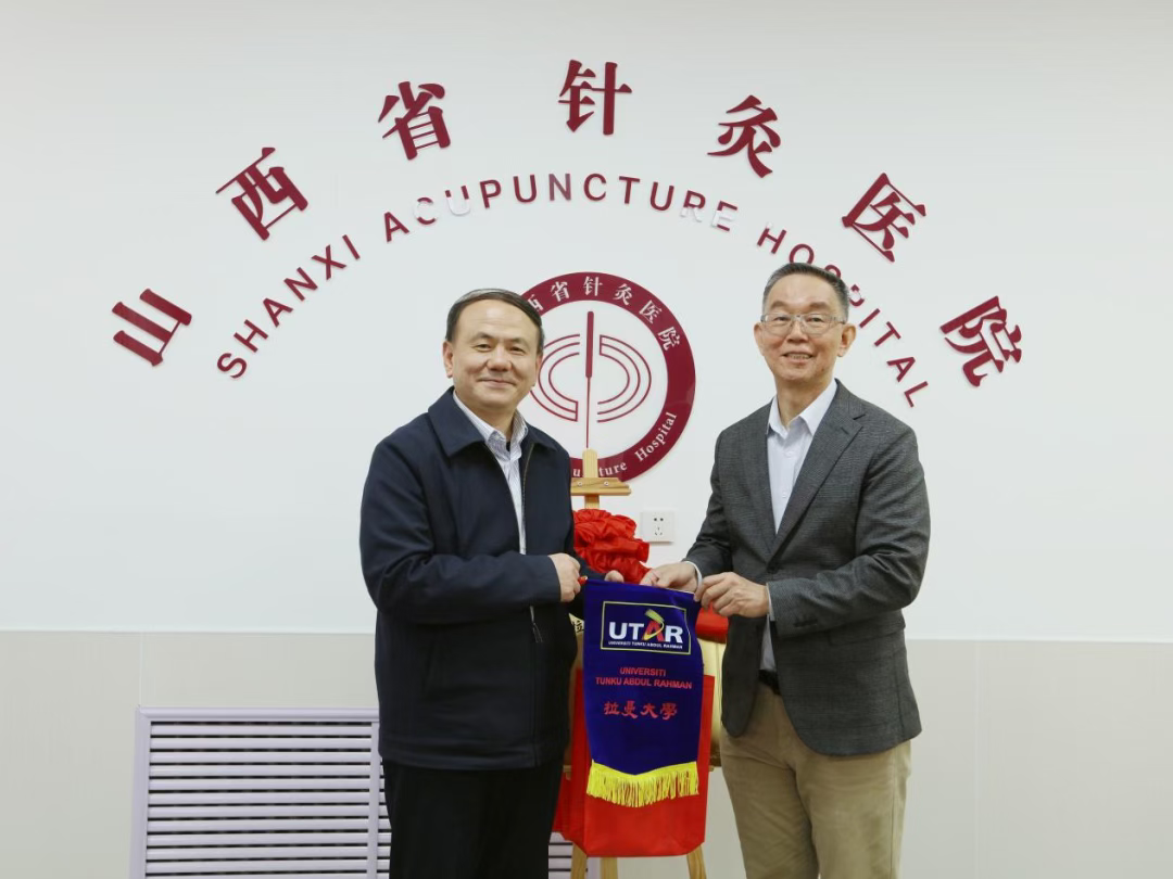 10月27日上午,马来西亚拉曼大学刘锦辉教授、国际医科大学陈苇善老师率教师及学生20余人实地观摩学习山西省医院协会副会长单位——山西省针灸医院非药物特色疗法,并为“马来西亚拉曼大学中医专业学生实践教育基地”揭牌。