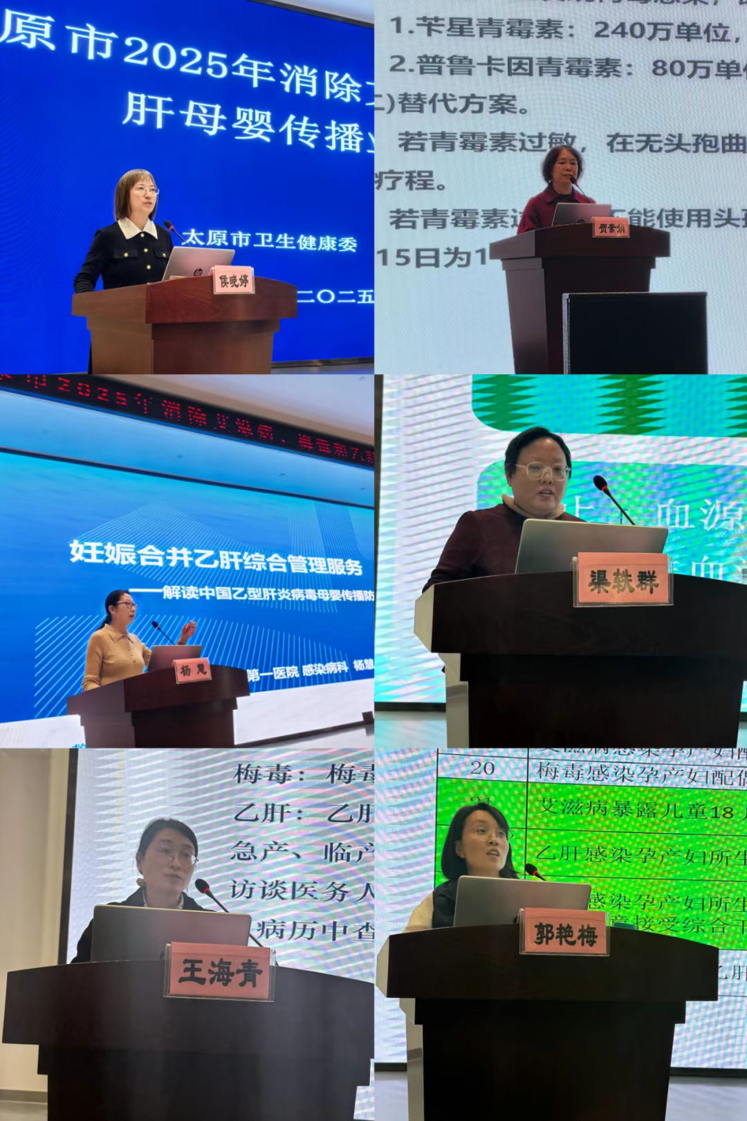 培训会议通报了太原市2025年1-9月消除艾滋病、梅毒和乙肝母婴传播工作进展及重点案例评审结果;围绕消除母婴传播认证-省会地市迎评准备、母婴传播消除认证评估要求、艾滋病、梅毒和乙肝感染产妇处理流程、预防艾滋病、梅毒和乙肝母婴传播工作举措、山西省消除艾滋病、梅毒和乙肝母婴传播数据信息管理方案等进行了重点说明与讲解;邀请山西省妇幼保健院、山大一院、太原市第三人民医院、太原市妇幼保健院等省、市级权威专家为大家授课。培训会议强调,各机构要强化组织领导、形成工作合力;提升服务质量,确保责任落实,共同努力解决工作中的短板和问题;全力以赴迎接国家卫健委对我省、我市开展的消除艾梅乙工作评估。