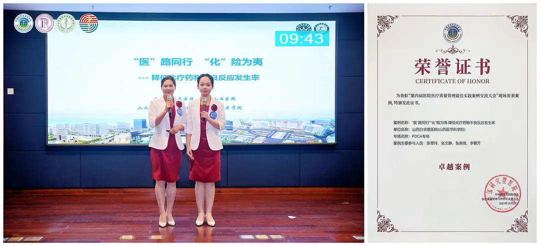 在PDCA专场,消化系统肿瘤科护理团队的参赛案例《“医”路同行,“化”险为夷——降低化疗药物不良反应发生率》,荣获卓越案例奖。该案例精准聚焦化疗药物不良反应,通过组建专项管理团队,构建“化疗前评估—用药中监测—出院后随访”的全程管理路径,显著提升了患者的治疗安全性,有效改善了患者就医体验。