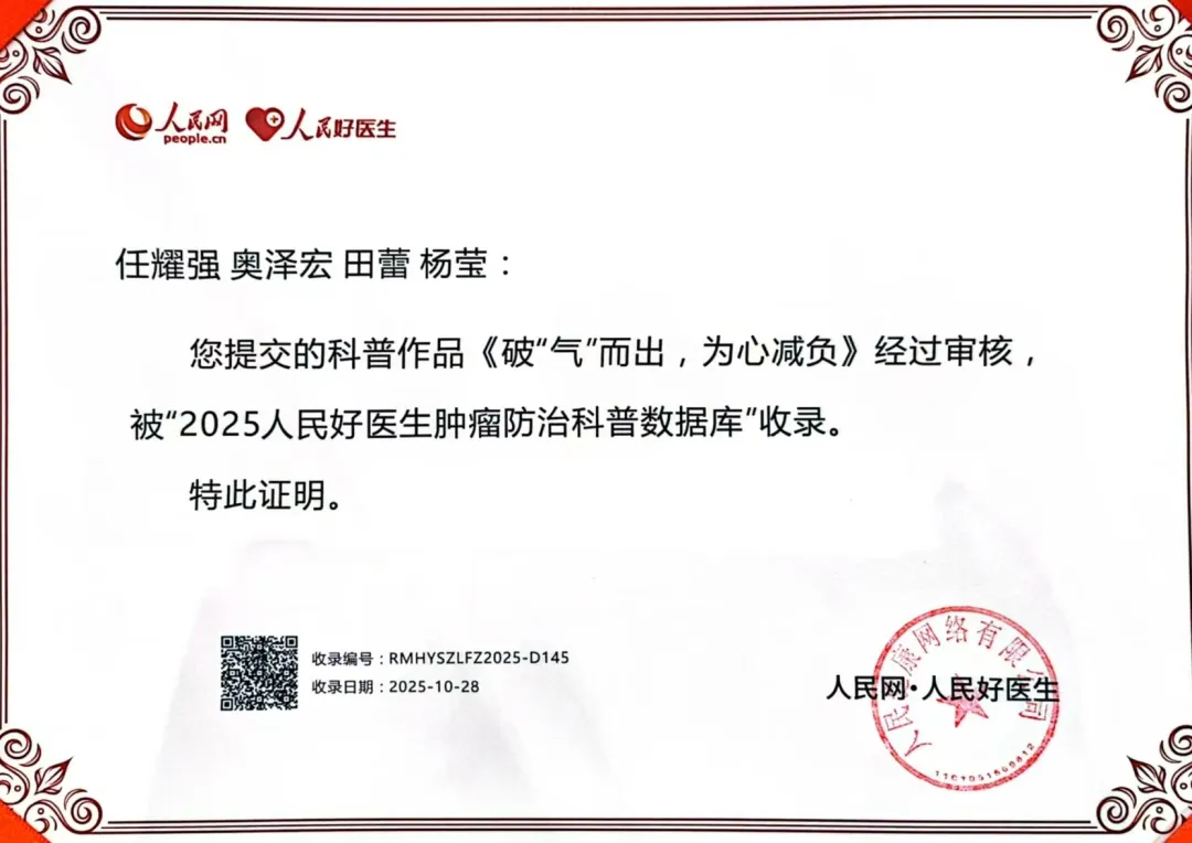 本次决赛改变传统颁奖模式,将“人民网签约作者认证”与“作品收录人民网科普数据库”作为核心荣誉。山西省汾阳医院的这部作品凭借过硬品质,成功入选人民网科普数据库,实现了科普价值的长效传播。(任耀强 申阳 朱俊琳)