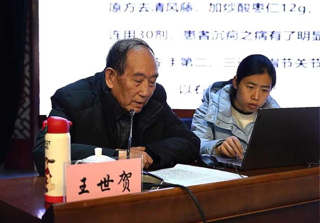 长治市首届名老中医、国医堂返聘老专家王世贺在会上分享了活血化瘀法治疗疑难杂症思路,提出“百病皆瘀”的核心观点——血瘀是疑难病的根源,临床中血瘀证是疑难病最常见的病理机制,并结合“风寒血瘀证”“阳虚血瘀证”等证型,详解了祛风汤、益气温阳通络汤等验方的组方思路与加减应用,其“温经散寒、活血通络”的辨证体系引发与会者热议。