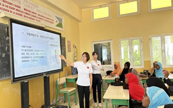 除了日常出诊,医疗队还会在周末以及节假日开展义诊及科普活动等。9月20日,我所在的中国(山西)第24批援吉布提医疗队与吉布提孔子学院携手,走进吉布提市巴尔巴拉区LYCEE DE PK.12中学开展科普教育活动,传播中华传统文化。我在“中医教你点亮‘视界’”环节介绍中医保护视力的理念和方法,讲解与视力相关的穴位及其按摩手法,并播放中国眼保健操视频,手把手指导学生们体验眼保健操,让他们亲身感受中医的独特魅力,备受孩子们欢迎。此次活动不仅缓解了学生的用眼疲劳,更激发学生们对中华传统文化的浓厚兴趣。这场跨越山海的科普之旅,在吉布提学子心中播下健康与希望的种子,也为中吉友谊增添新的亮色。