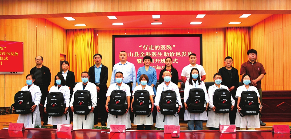 ▲“行走的医院”全科医生助诊包发放仪式现场。