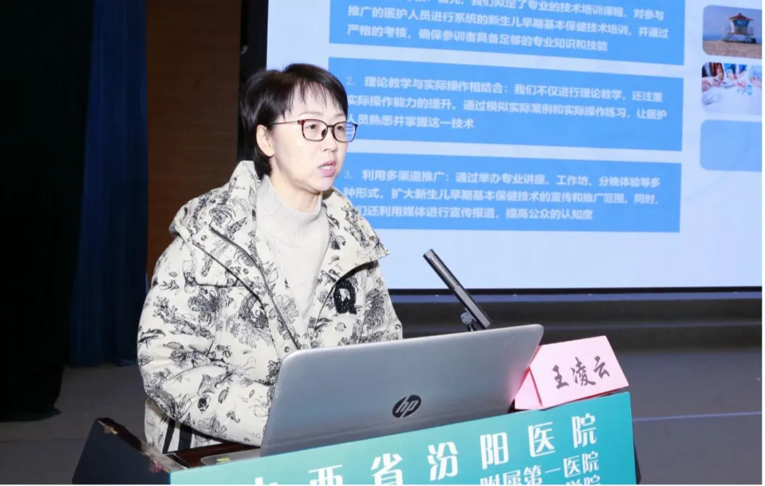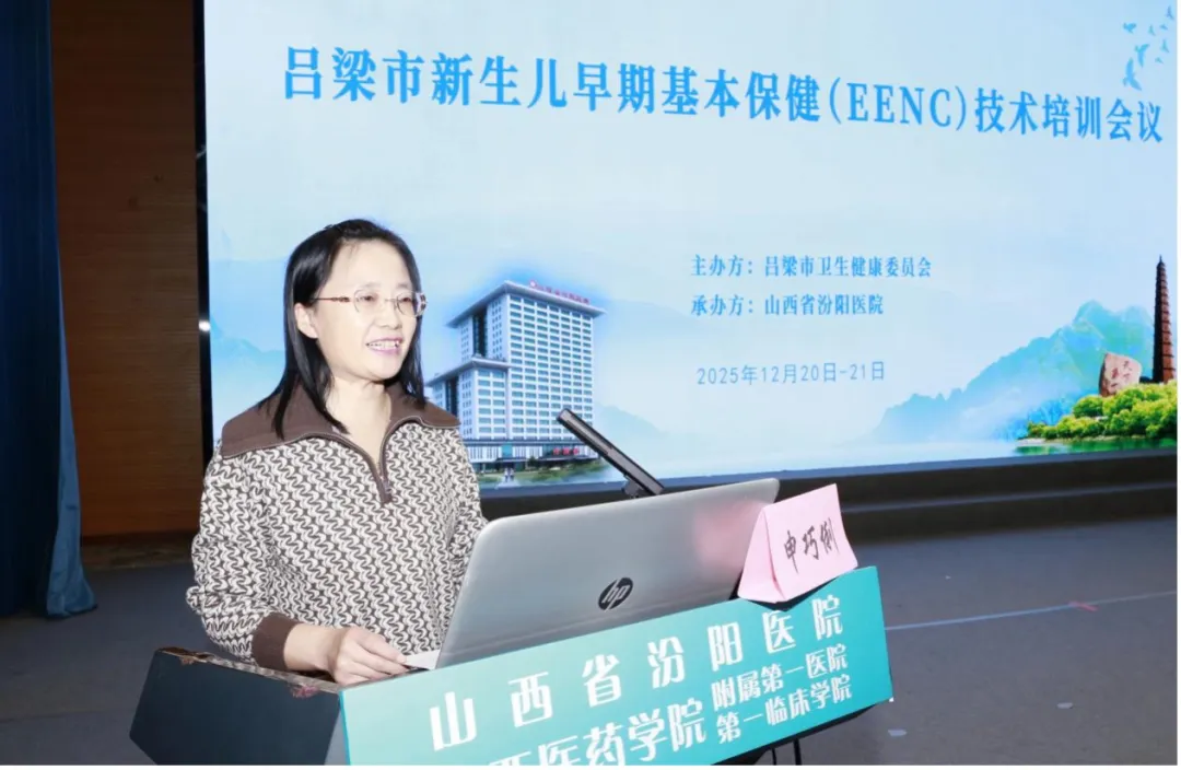 山西省汾阳医院产科主任申巧俐在开幕式上转达吕梁市卫健委妇幼科科长李艳霞对本次培训的希望:一是希望大家“学到”,更“学透”“用好”,推动“思想观念”的更新迭代,深刻理解从“以疾病为中心”到“以健康为中心”的转变;二是希望大家“学以致用”,将所学知识真正转化为守护新生儿健康的具体能力和实际成效,成为本单位、本区域规范推广此项技术的“火种”和“标杆”。