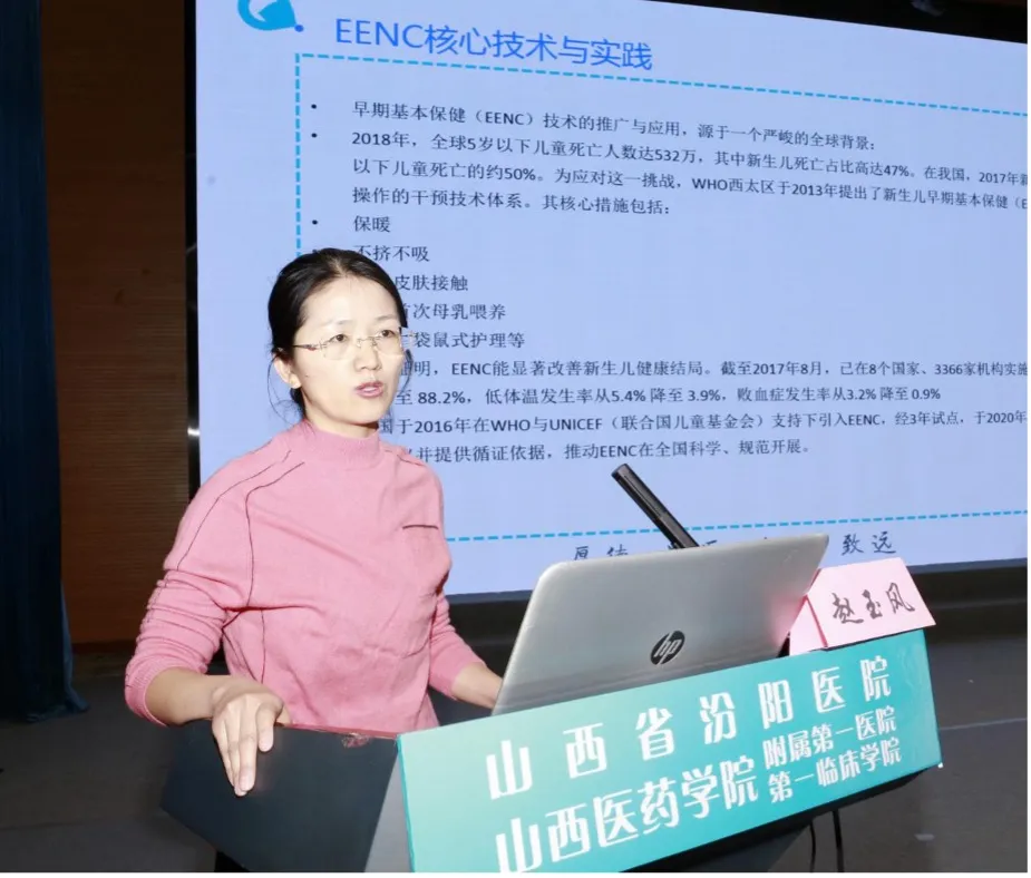 山西省汾阳医院产科主任申巧俐在题为《延迟脐带结扎》的讲授中提出,EENC技术是新理念与旧传统做法的碰撞,因此需要大家深度理解延迟断脐及EENC其他核心技术对母婴的益处,才能从思想上接受并学习推广此项技术。山西省汾阳医院儿科主任赵玉风围绕“新生儿早期保健理论核心要点”作专题授课,内容紧密贴合基层临床需求,从新生儿生理特点出发,系统阐释了EENC的核心内涵,明确了新生儿早期保健的时间范畴、服务目标与核心服务内容,为参会医护人员夯实理论基础、规范临床认知提供了有力指导。