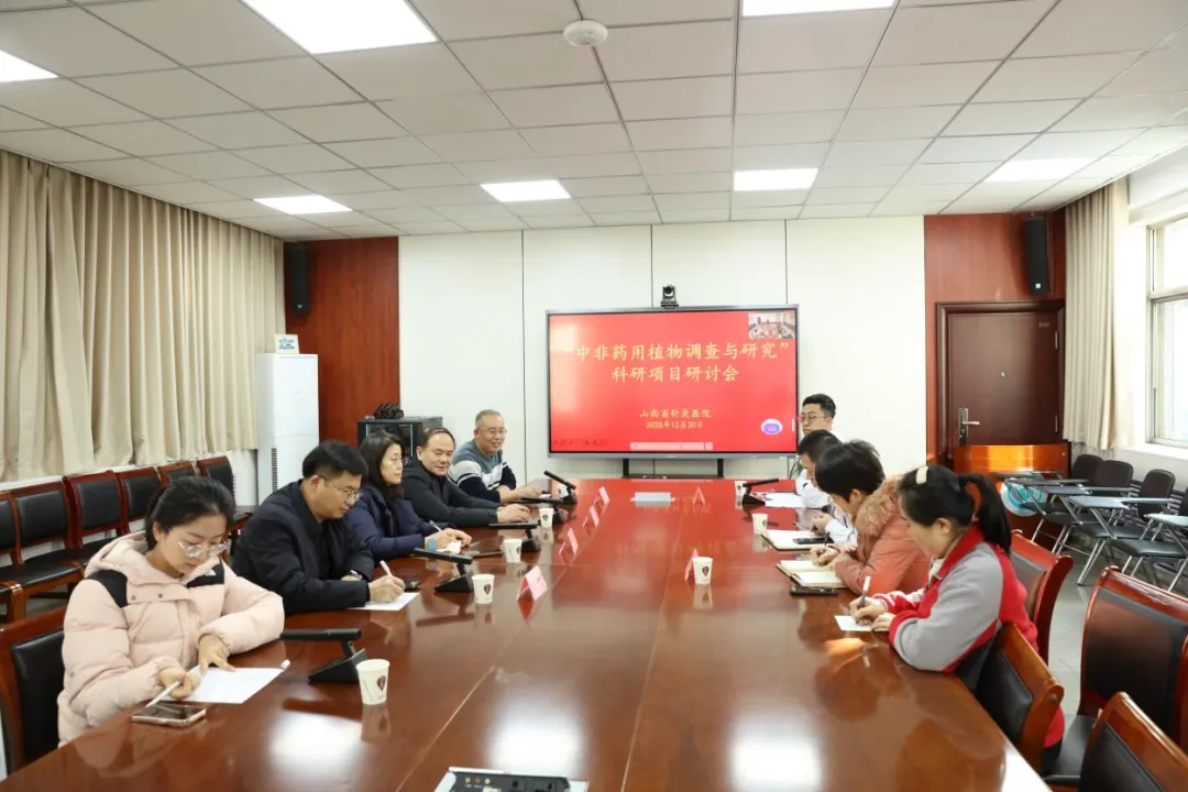 近日,山西省“新时代神农尝百草行动”重点科研项目“中非药用植物调查与研究”推进会在山西省医院协会副会长单位——山西省针灸医院,以“线上+线下”模式召开。山西省卫生健康委员会国际交流合作处二级调研员朱丽华到会指导。全国老药工刘根喜工作室负责人及成员、山西援非医疗团队代表、山西中医药大学柴智教授团队,以及山西省针灸医院郝重耀教授团队核心成员参会。