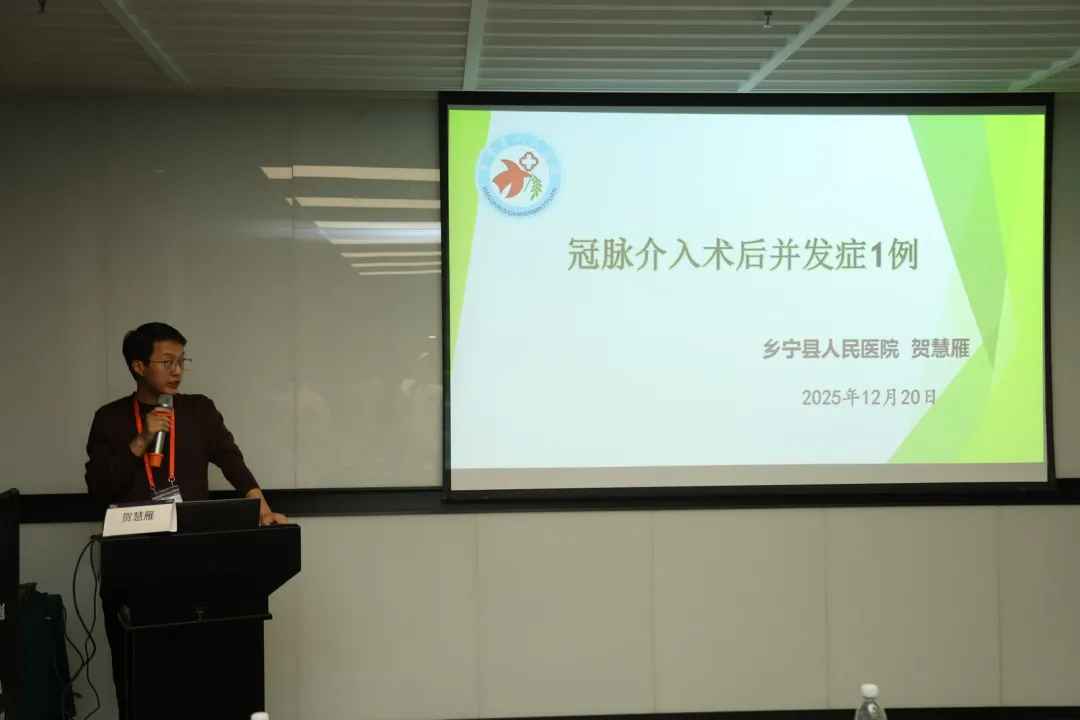 在病例讨论环节,乡宁县人民医院心血管内科贺慧雁主治医师作为基层医院代表登台分享典型病例,用详实的诊疗思路、扎实的临床功底,充分展现了医院在心血管疾病诊疗领域的基层实践实力。