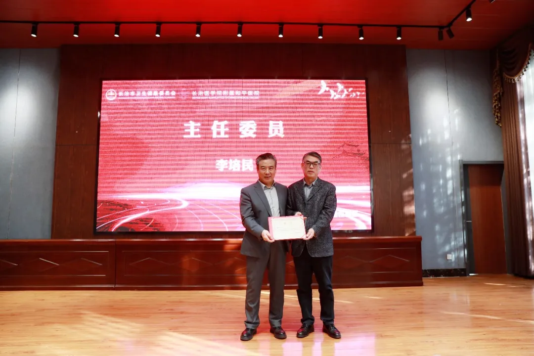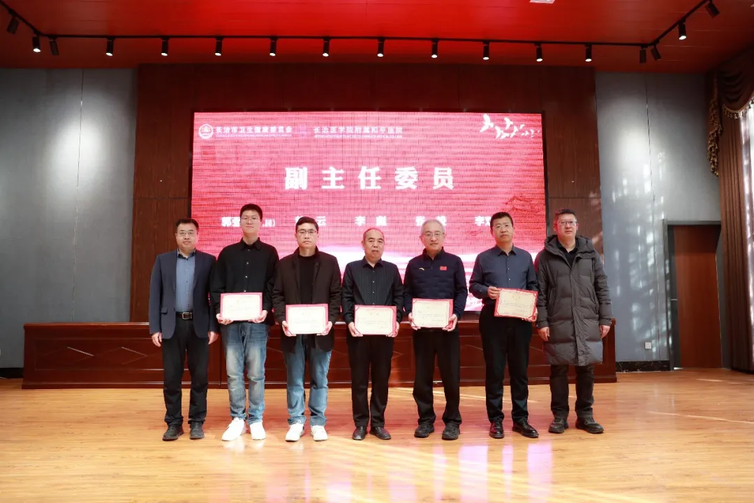 王培龙为李培民颁发“长治市卫健委综合介入专业质控部主任”证书。冯对平与靳毅为副主任颁发证书。