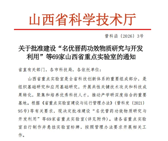 近日,山西省科学技术厅正式印发《关于批准建设“名优晋药功效物质研究与开发”等69家山西省重点实验室的通知》。经省科技厅严格评审,山西省医院协会副会长单位——山西省针灸医院晋派针灸山西省重点实验室成功获批。这是对医院科研实力与学科建设水平的充分肯定,将为医院深化医学研究、推动临床转化、培育人才梯队提供坚实支撑。