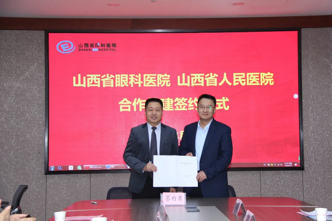 在全体参会人员的见证下,田首元、周国宏共同签署《山西省眼科医院与山西省人民医院共建协议书》。双方将围绕医疗技术协作、人才培训交流、双向转诊畅通、科研项目共促四大方面开展深度合作。