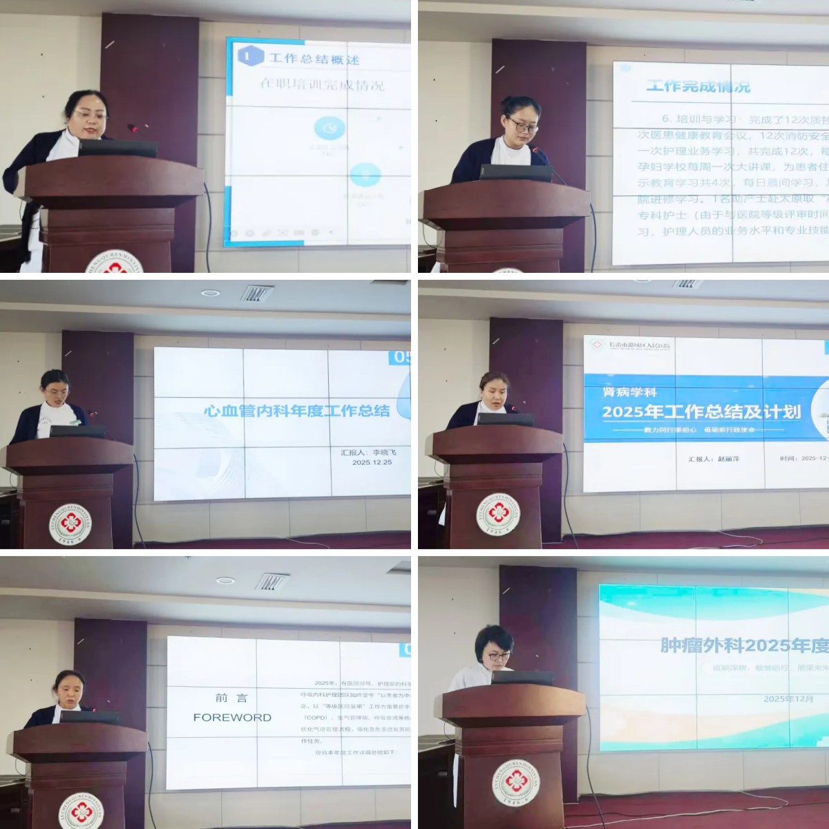 随后,各科护士长进行护理工作总结汇报,围绕科室情况、护理质量管理、工作亮点与不足等内容,对2025年的护理工作进行全面的梳理汇报,并结合科室实际制定了下一年的工作计划,明确了工作重点与实施路径。