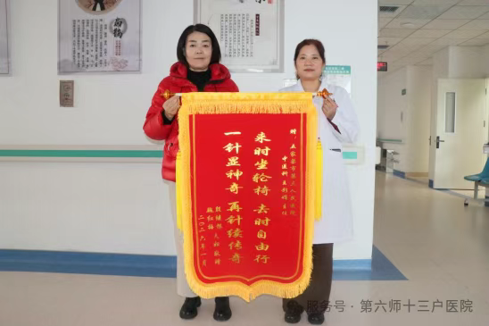 医院王彩娟医生目前正在新疆维吾尔自治区五家渠市第三人民医院工作。据了解,送锦旗的患者此前因不慎扭伤,导致行动不便,入院时甚至需要家属推着轮椅护送。疼痛和行动受限给患者的日常生活带来了极大的困扰。面对患者的病情,王彩娟医生凭借其深厚的中医理论功底和丰富的临床经验,经过细致诊断,决定采用针灸疗法为其进行治疗。令人欣喜的是,经过一段时间的精心针灸治疗,患者的病情得到了显著好转,康复效果远超预期。出院时,患者已经能够自如地行走,甚至可以自己推着轮椅回家。
