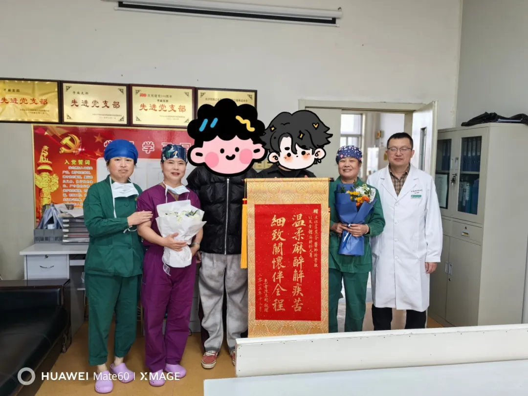 在严谨科学的方案和团队全力以赴的护航下,患者后续两次手术过程平稳,生命体征始终控制在理想范围,未再出现重**动,术后亦恢复顺利,最终痊愈出院。回想这段曲折的治疗历程,张先生及家属感慨万千,特意送来锦旗“温柔麻醉解疾苦,细致关怀伴全程”,感谢医护团队的不懈努力与精心救治。