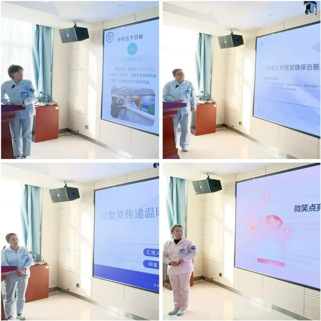 护理部主任何松洁在听取汇报后,对已取得的成效表示肯定,认为各科室的实践充分体现了医院以“病人安全”为中心的服务理念,将微笑的温度与专业的深度有机结合,展现了护理服务的核心价值,为全院护理团队搭建了宝贵的互学互鉴平台。下一步,护理部将系统提炼优秀经验,形成规范化指引,并将微笑服务纳入常态化质量评价体系,持续推动护理服务与质量持续提升,为提升患者就医获得感、守护人民群众健康不懈努力。(何松洁)