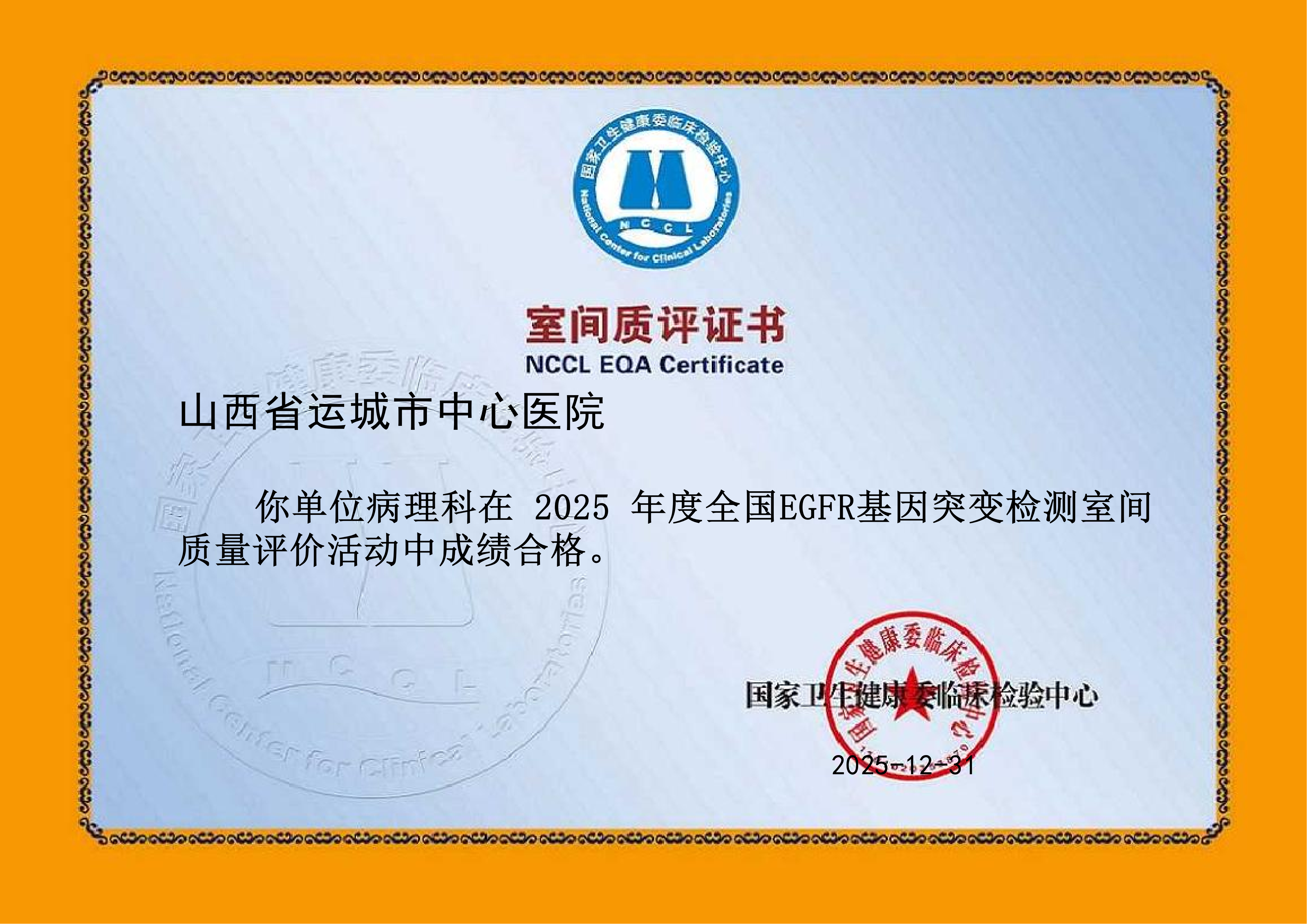 近日,国家卫生健康委员会临床检验中心公布了最新一轮室间质评结果,山西省医院协会常务理事单位——运城市中心医院病理科精准医学分子实验室凭借稳定且卓越的检测质量,再度以满分成绩顺利通过评估。自2022年起,实验室已连续四年在此项国家级权威考核中斩获满分,充分彰显了医院在分子病理检测领域过硬的技术实力与标准化管理水平。