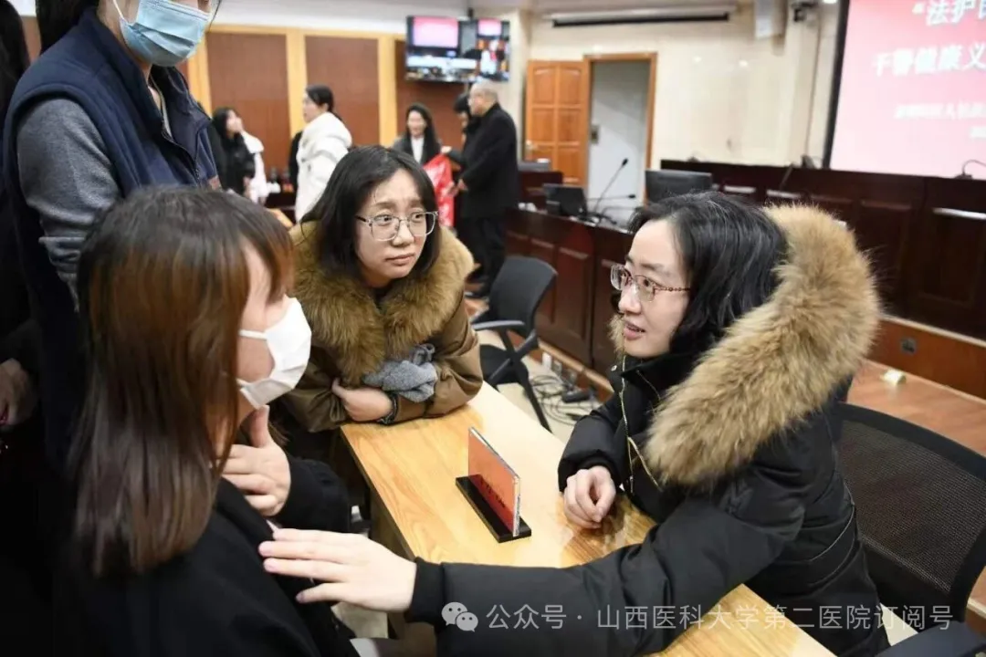 为切实关爱干警身心健康,筑牢司法队伍健康防线,深化从优待警工作,1月23日,山西省医院协会副会长单位——山西医科大学第二医院联合太原市杏花岭区人民法院开展“法护民生 医守安康”干警健康义诊暨心理疏导专项活动。医务部负责人王小虎、医务部医疗纠纷调解科科长徐海滨带领多学科专业医疗团队走进法院,将优质医疗服务送到司法工作一线,为全院干警送上专业、便捷、暖心的健康盛宴,获得干警们的广泛好评。