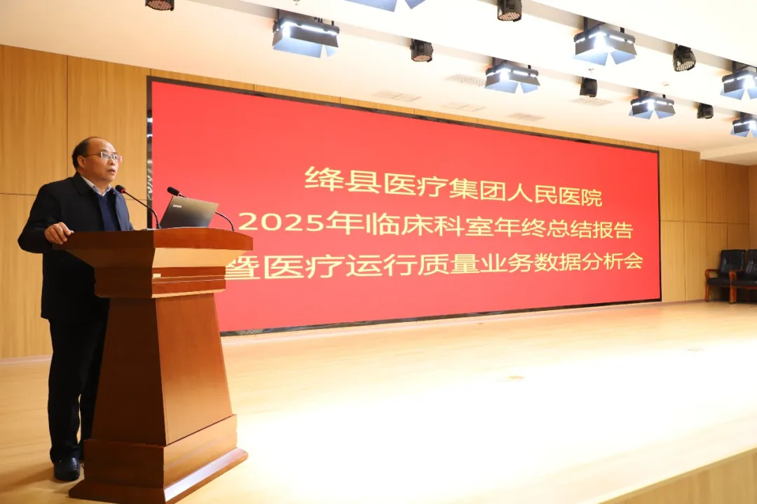 2026年1月23日,山西省医院协会理事单位——绛县人民医院召开2025年度临床科室总结报告暨医疗运行质量业务数据分析会,总结回顾过去一年的工作成果,分析研讨发展问题,规划部署新一年重点工作方向。绛县医疗集团、县人民医院院长闫怀志讲话。医院班子成员、各临床科室主任、护士长及中高级职称以上医师参会。