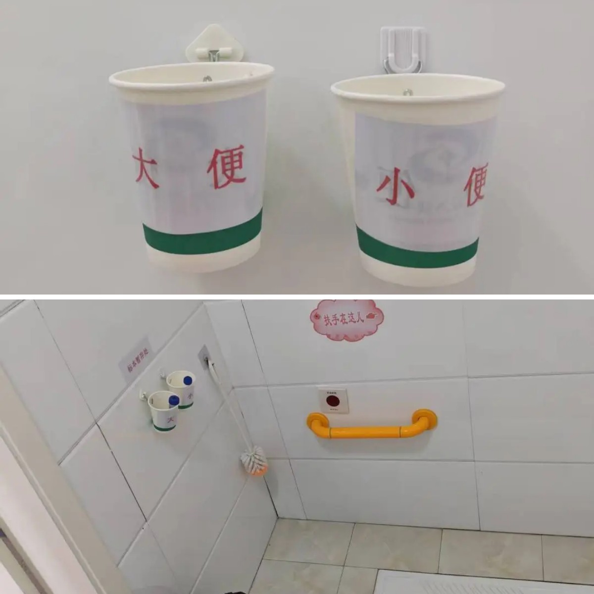 该科室的每个住院患者都有检查大便、小便常规的安排。为方便标本存放,避免患者来回跑,降低滑倒及标本的丢失、遗忘、乱放等风险,科室在每个病房卫生间设置大、小便标本暂存处,将废弃纸杯挂于卫生间墙面,粘贴标识,暨方便了标本存放,又营造出清洁、安全、舒适的住院环境。
