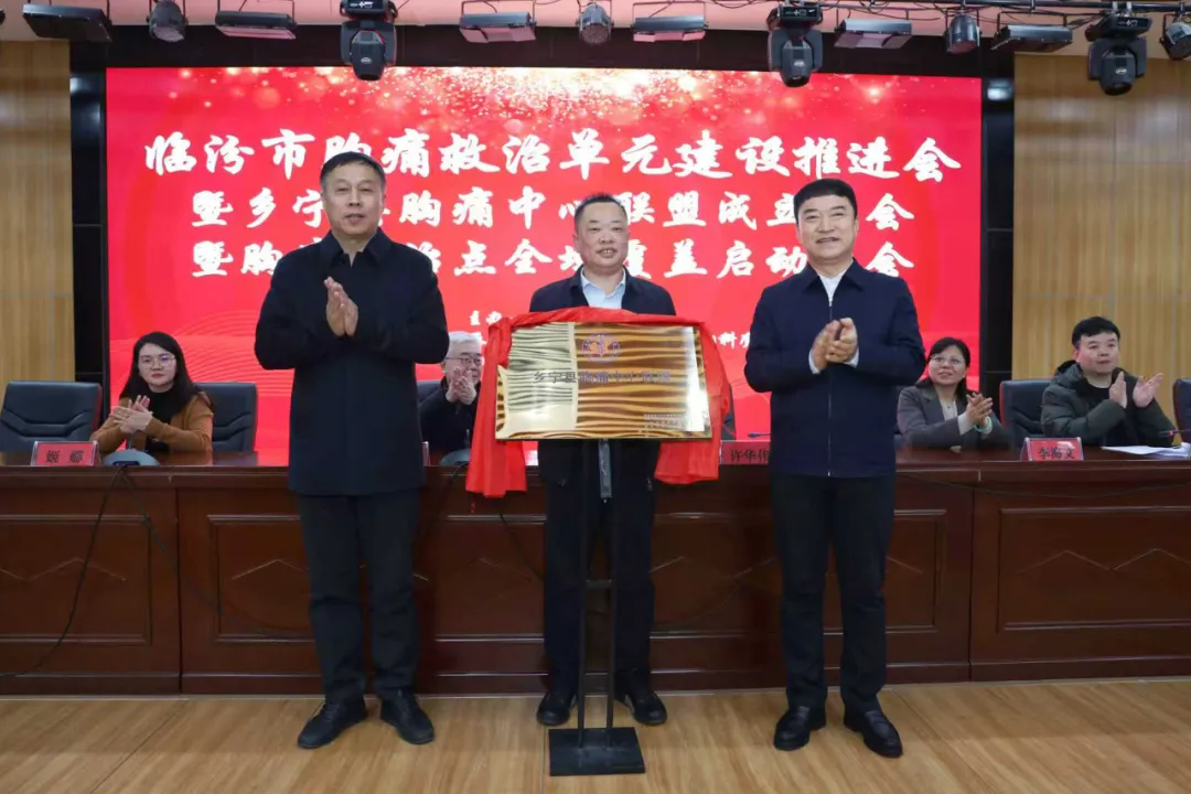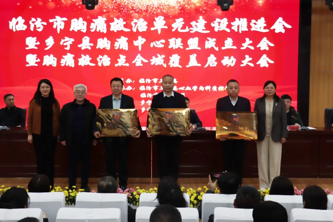 会上,乡宁县县委副书记、县长许华伟,临汾市卫健委一级调研员毛崇澜为乡宁县胸痛中心联盟授牌。临汾市胸痛中心联盟主席王益民宣读国家认证胸痛救治单元名单,并祝贺乡宁县实现胸痛救治单元全域覆盖。中国胸痛中心联盟副主席兼专家委员会执行主任方唯一教授、胸痛救治单元负责人姬娜、山西省胸痛中心联盟秘书长李海文为乡宁县中医医院、西交口乡卫生院、枣岭乡卫生院谭坪分院授牌。乡宁县副县长邱肸靖主持会议。乡宁县医疗集团党委书记、院长刘海斌介绍胸痛中心建设情况。
