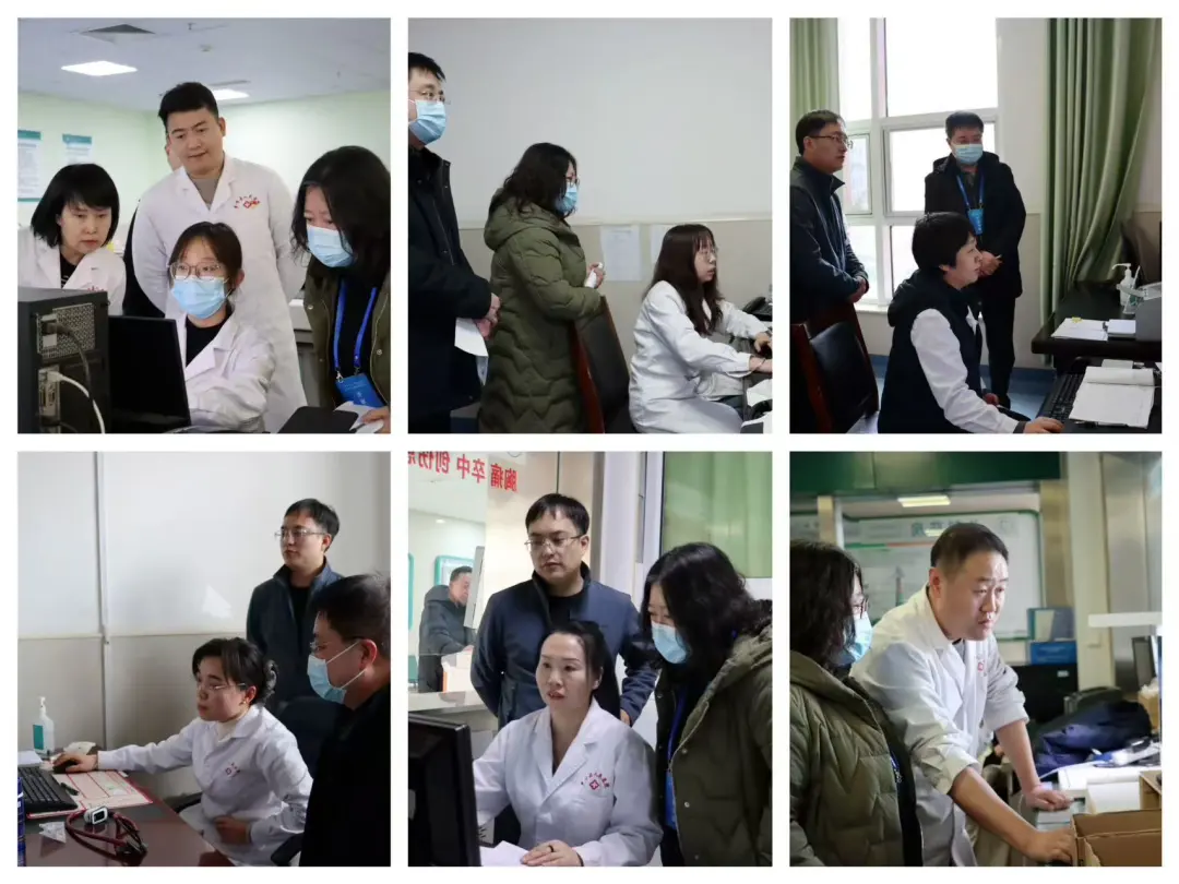 汇报演示结束后,评审组深入临床、医技科室及信息机房实地核查,严格对照评审标准,通过查资料、现场问询、系统实操等方式,全面核查系统稳定性、数据准确性及流程规范性。