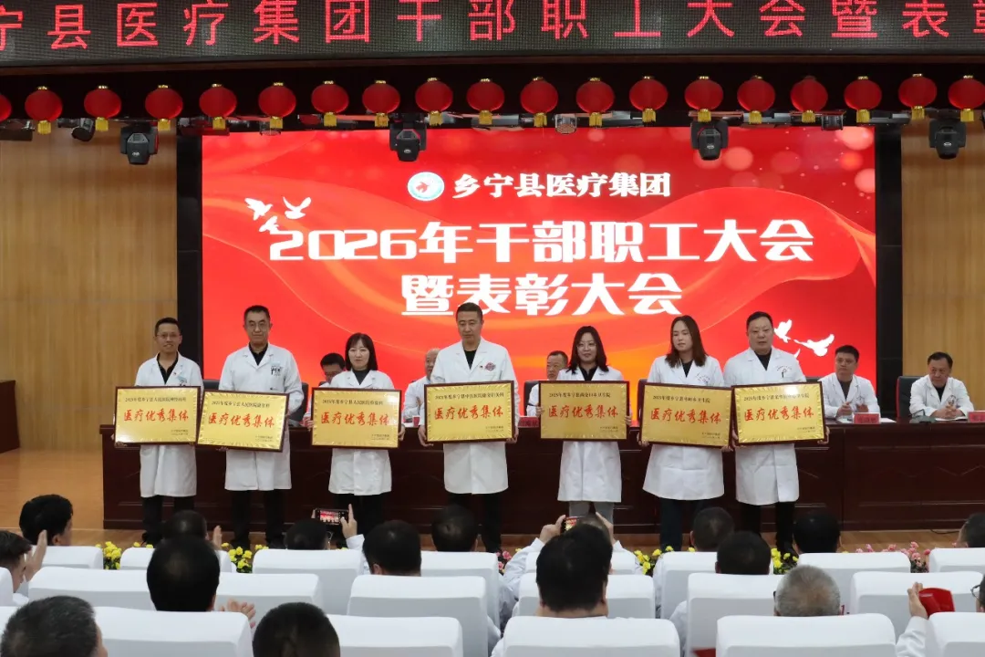 2026年1月22日,山西省医院协会理事单位——乡宁县医疗集团召开2026年干部职工大会暨表彰大会。医疗集团领导班子、职工代表以及受表彰的先进集体和先进个人参会。