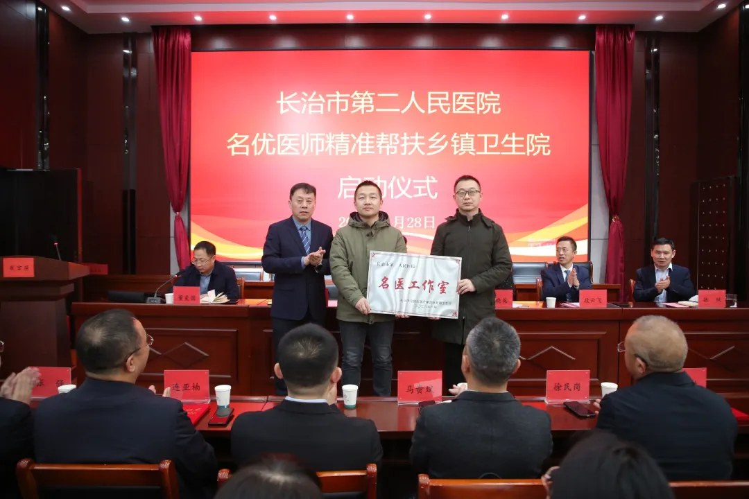 会上,何跃文为名医工作室授牌。长治市第二人民医院副院长段云飞宣读《长治市第二人民医院紧密型城市医疗集团强基工程实施方案》。屯留区医疗集团党委书记、院长张斌就集团选派技术骨干开展对口帮扶的情况作汇报。