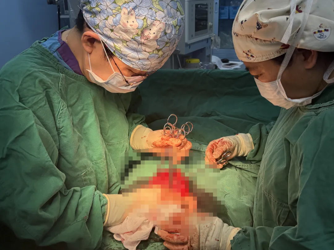 手术由医院党委书记李志红主刀。打开腹腔后,医生眼前的景象印证了术前预判:子宫前壁浆膜层呈青紫色,血管迂曲怒张,可见浆膜层下即为胎盘组织及丰富的血管网,且子宫前壁肌层已部分缺损,仅剩菲薄的浆膜层包裹,任何轻微操作都可能引发致命性大出血,手术难度与风险达到顶峰。