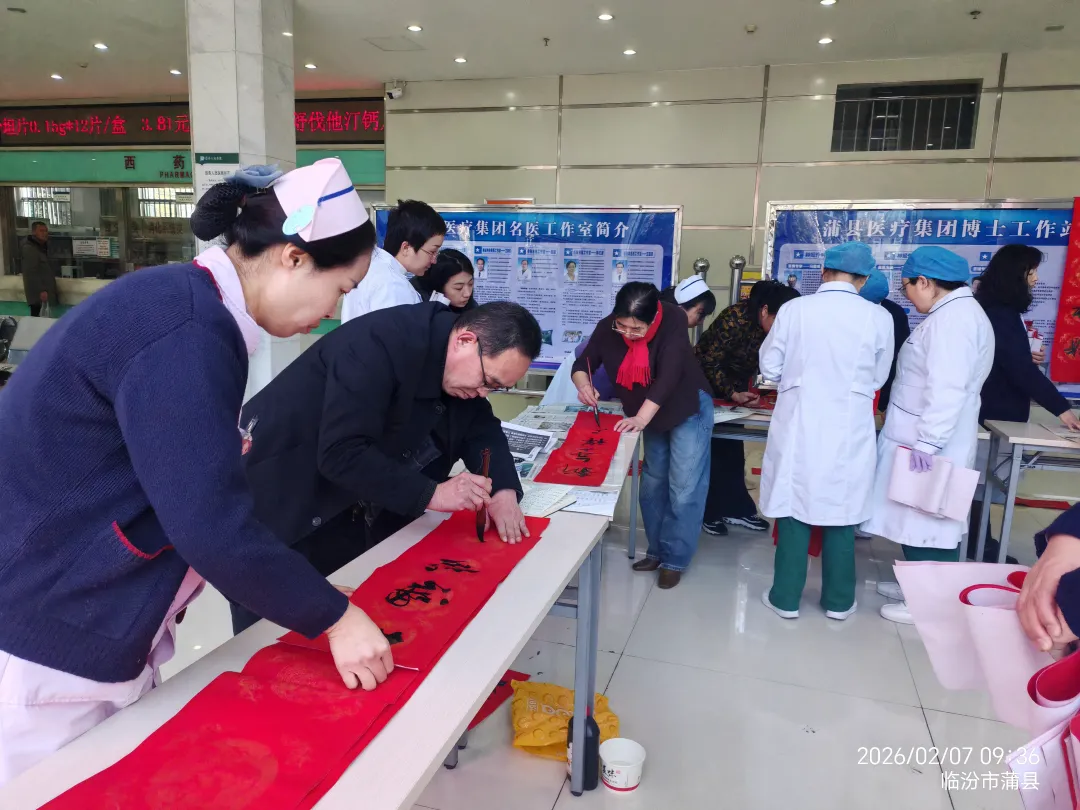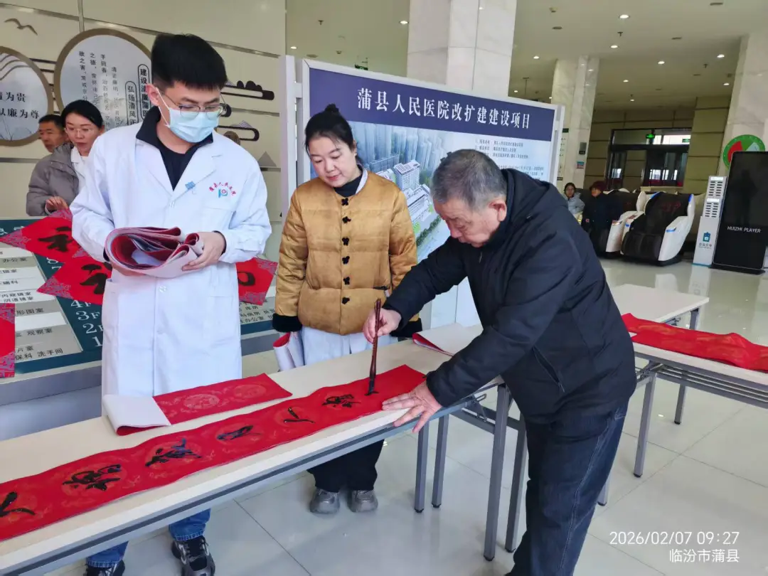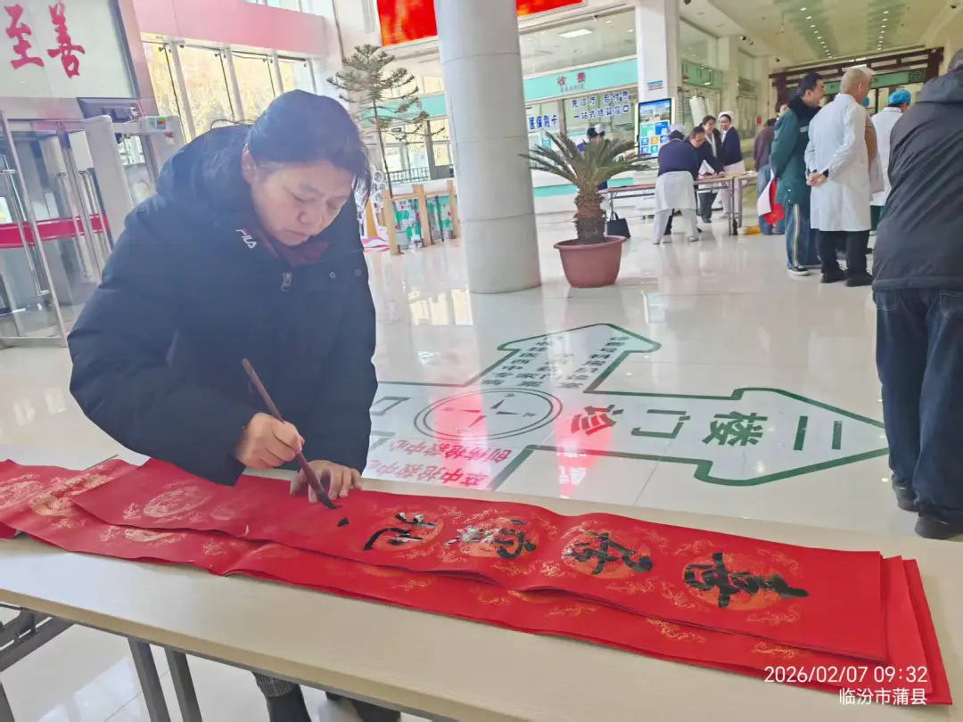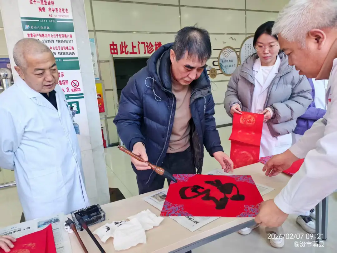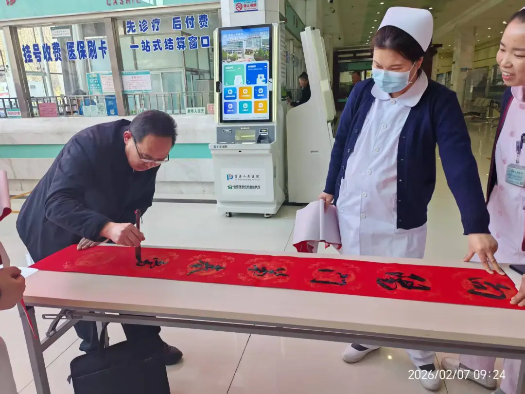 笔墨凝情传暖意,春联送福贺新春。在马年春节来临之际,为弘扬中华优秀传统文化,传递新春美好祝福,蒲县书法家协会与蒲县医疗集团联合举办“墨香迎新春 祝福送万家”写春联送祝福活动,为坚守一线的医护人员和就诊患者及家属送上一份特殊的新春问候与人文关怀,让浓浓的年味与温情洒满医院的每个角落。