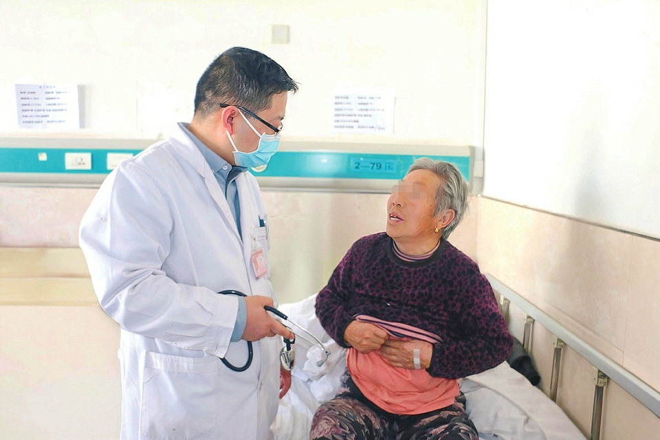 ▲内科主任李春晶在了解住院患者病情。杨盘兴摄