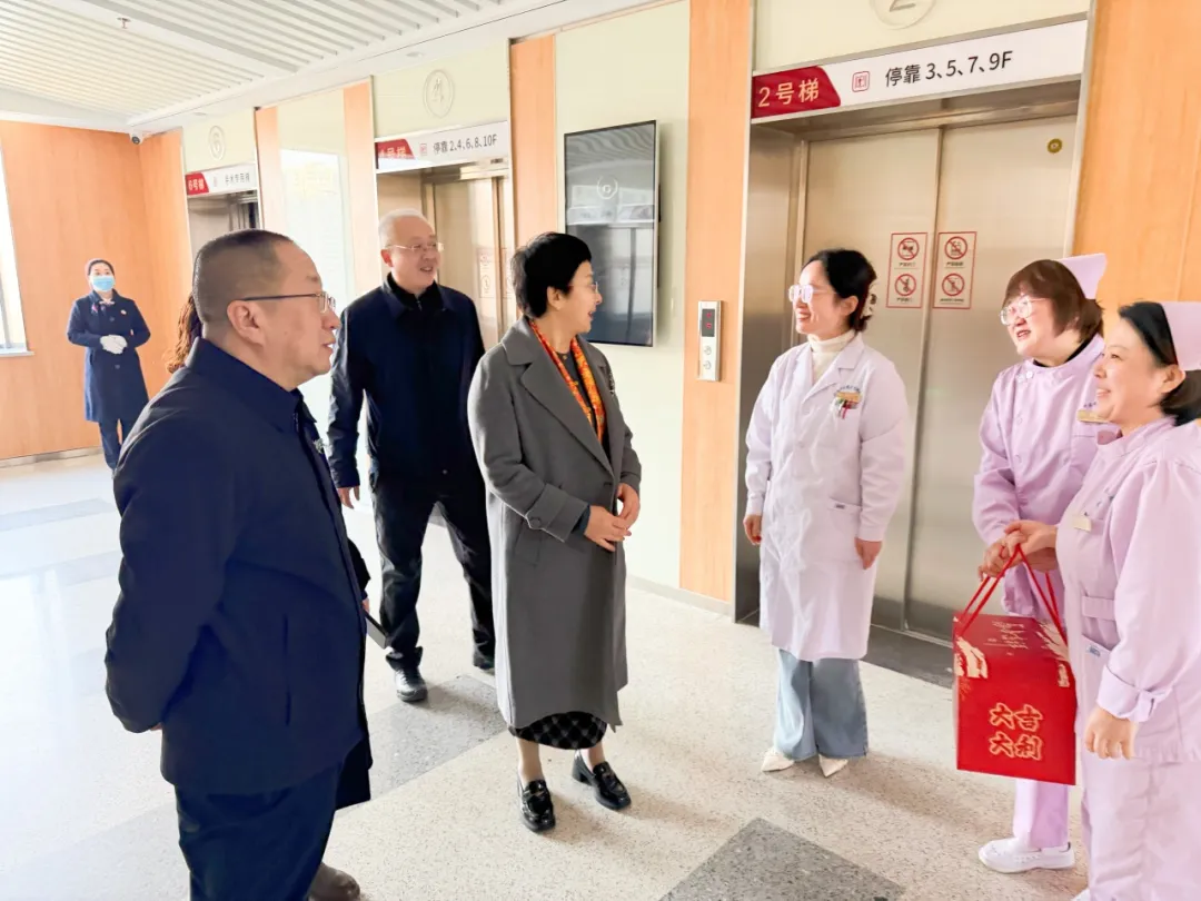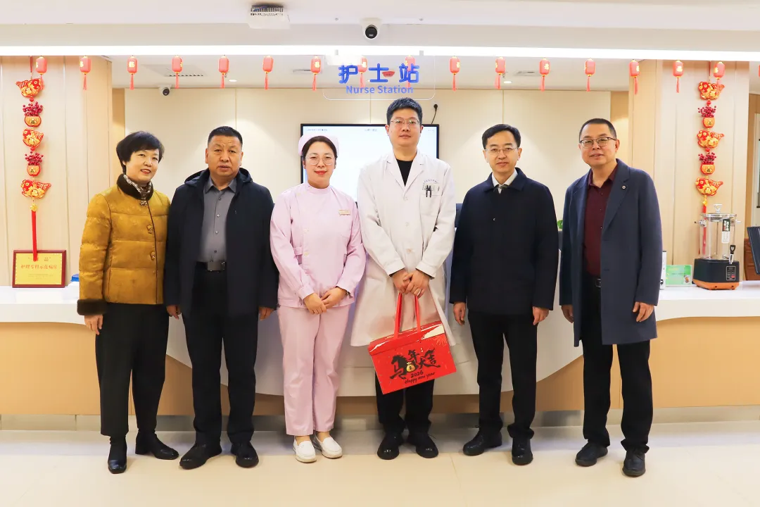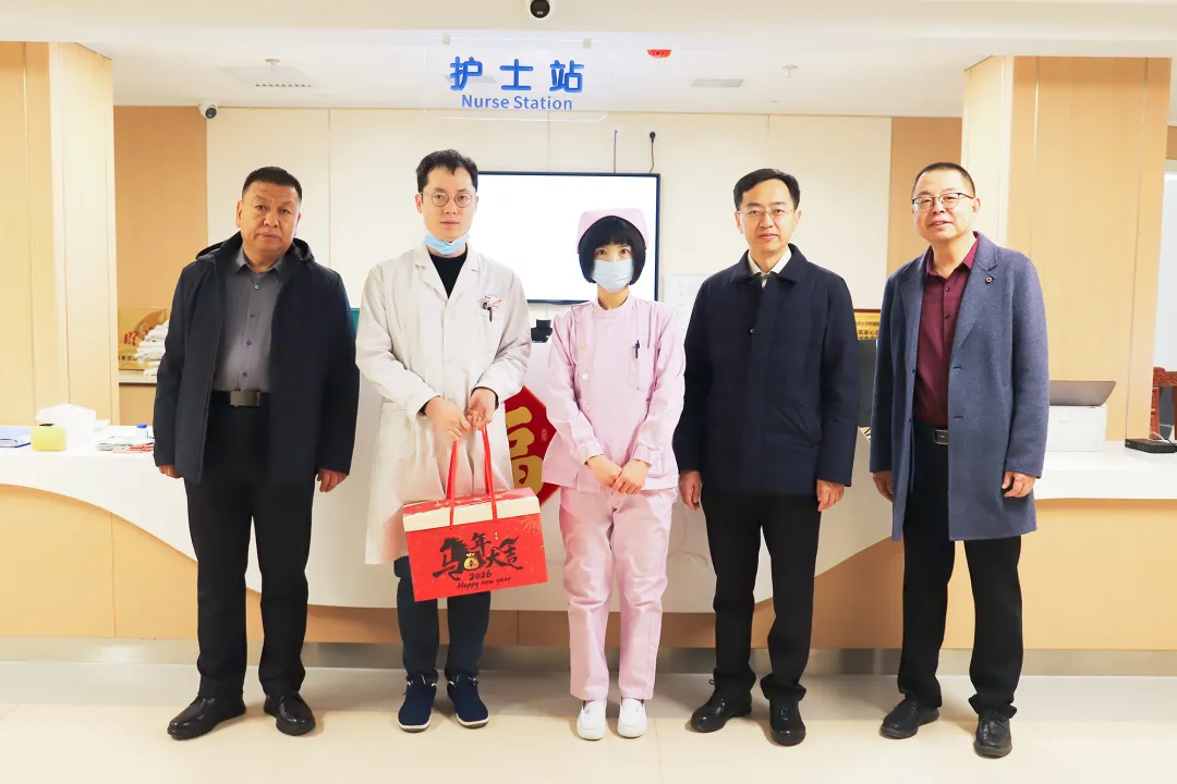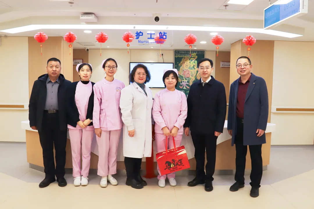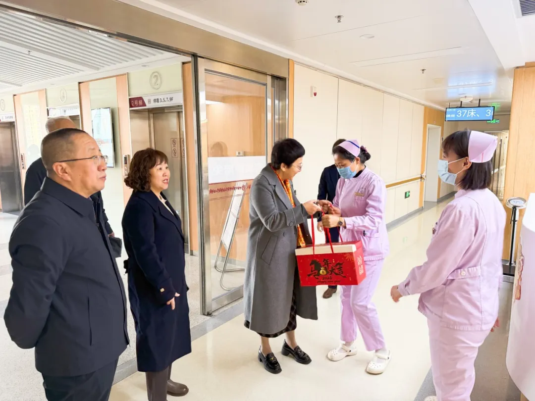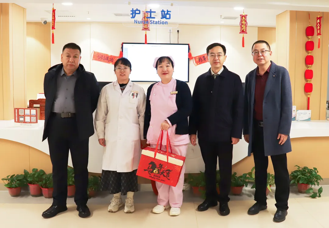 这天上午,医院的新春温暖慰问如约而至。院党委书记安玉兰、院长王建青、副院长武登龙、纪委书记李晓伟及相关职能科室人员来到中西医结合泛血管临床诊疗中心、住院楼、康复中心等处,向坚守岗位的职工送上温暖关怀和新春祝福。