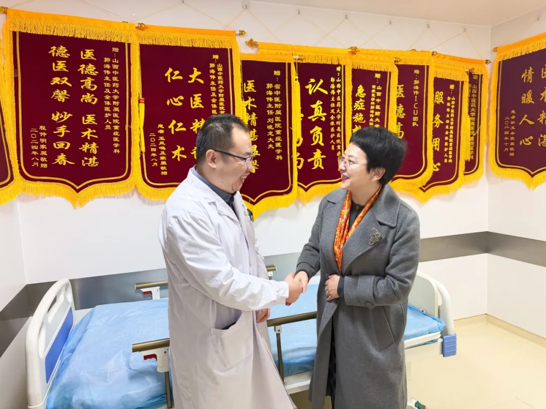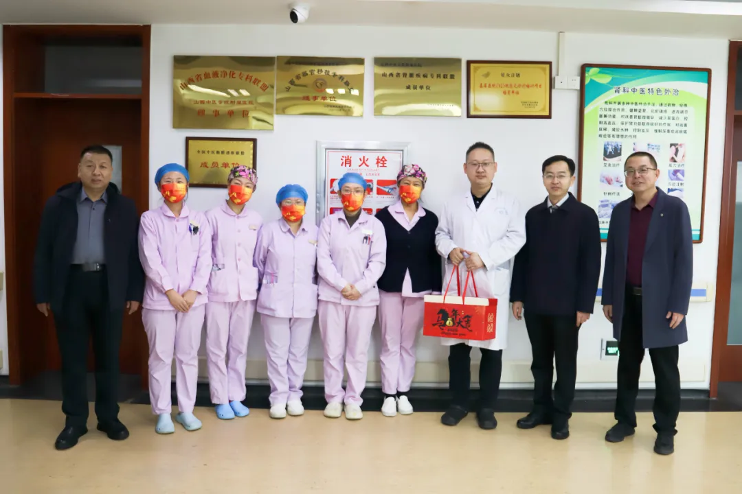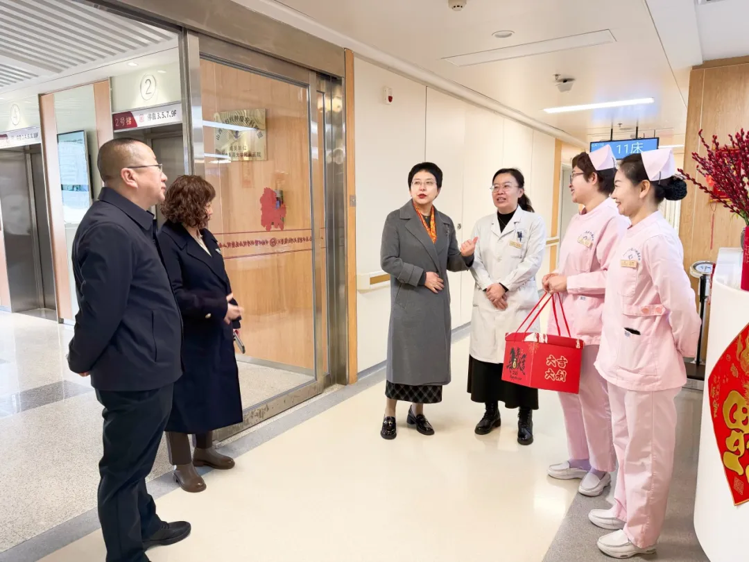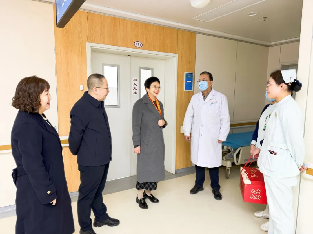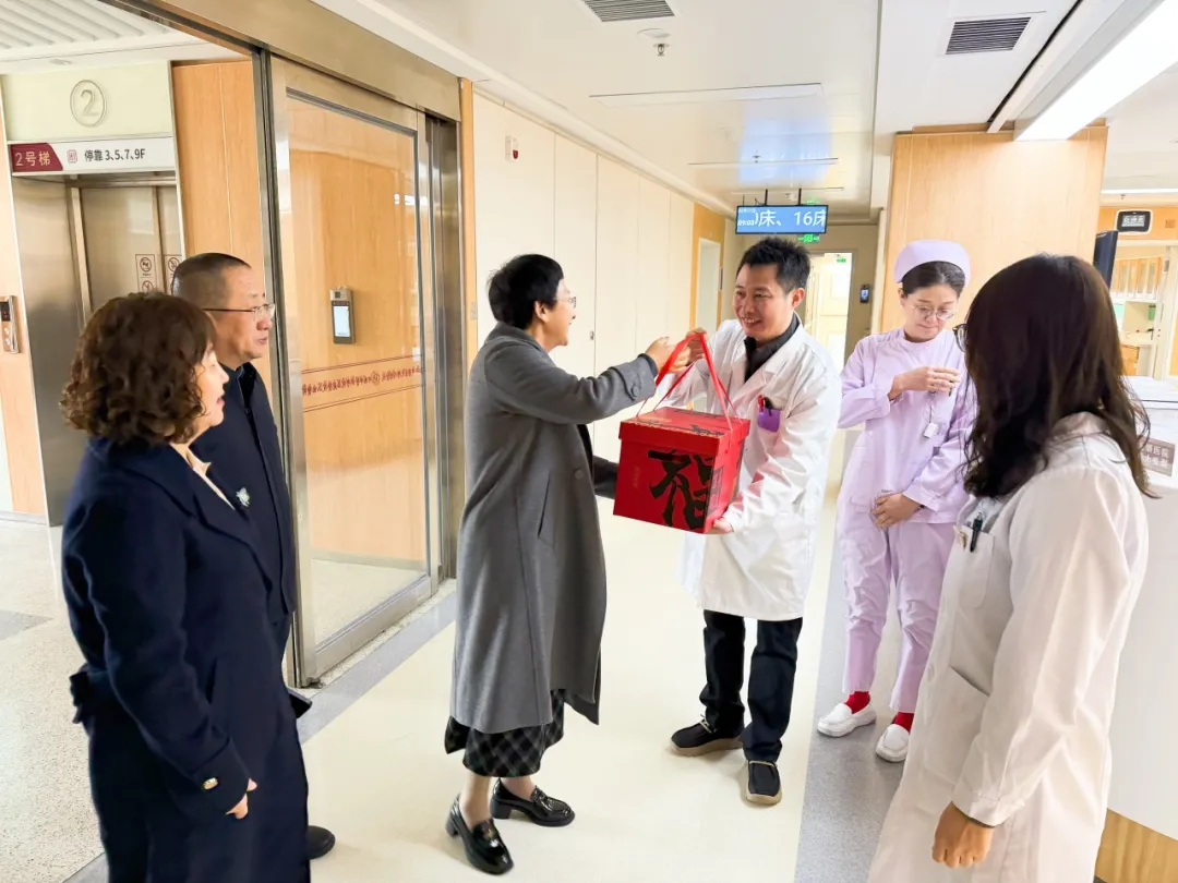 这天上午,医院的新春温暖慰问如约而至。院党委书记安玉兰、院长王建青、副院长武登龙、纪委书记李晓伟及相关职能科室人员来到中西医结合泛血管临床诊疗中心、住院楼、康复中心等处,向坚守岗位的职工送上温暖关怀和新春祝福。