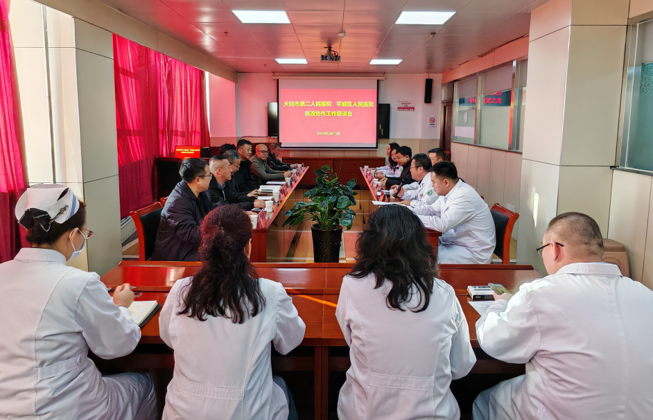 2026年2月13日,山西省医院协会常务理事单位——大同市第二人民医院与平城区人民医院召开医改协作工作座谈会,总结前期合作经验,并决定进一步细化方案、健全机制,把协作成效转化为服务群众的实际行动,推动合作走深走实。