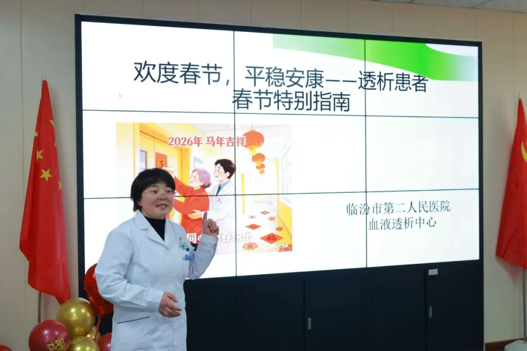 因“肾”结缘,为爱相聚!近日,山西省医院协会理事单位——临汾市第二人民医院血液透析中心举办“医患同心,共赴春光”主题肾友联欢会。党委委员、副院长宋威出席活动并致辞。人事科主任张素红、肾内科主任杨梅、血液透析中心医护人员、肾友及家属欢聚一堂,在温馨的氛围中迎接新春,传递陪伴与关怀。