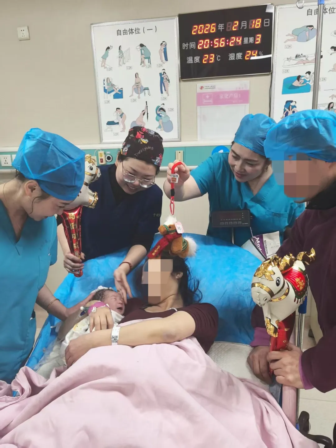其间,首个马年小宝贝于正月初一2时20分降临,是个健康活泼的男宝宝,体重3200克。他用洪亮的啼哭,为全家送上了新春贺礼。当医护人员将裹着襁褓的宝宝轻轻抱到妈妈身边时,妈妈所有的疲惫都化为眼底的温柔与泪光。新晋爸妈满心欢喜地说道:“没想到宝宝赶在新春伊始来赴约,平安健康,是我们收到过的最特别的新年礼物。”