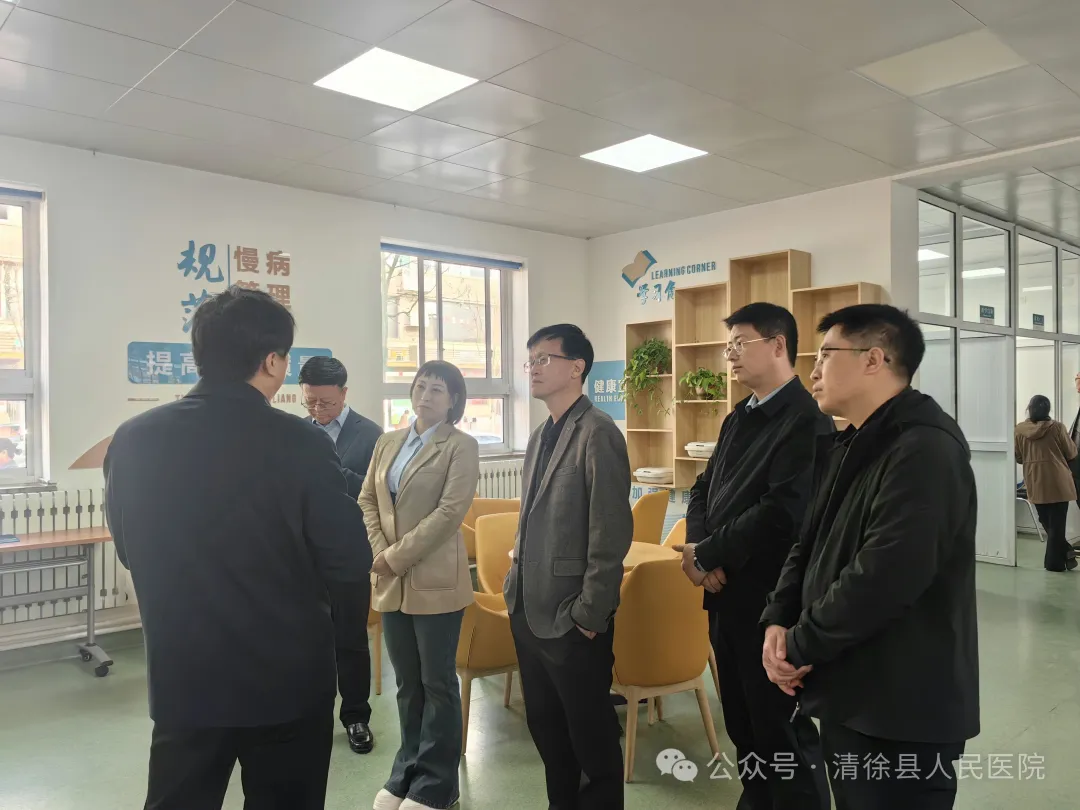 座谈会后,合水县考察团实地走访清徐县医疗集团中心(云)药房、审方中心及慢病管理中心,察看了药械管理、处方审核、智慧药学服务及慢病一体化管理运行实况,详细询问建设运营中的具体做法和经验,并结合合水县实际情况,与清徐县相关负责人交流探讨优化路径。