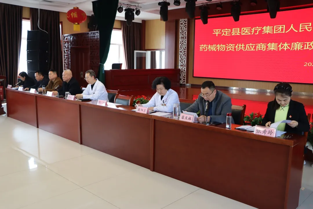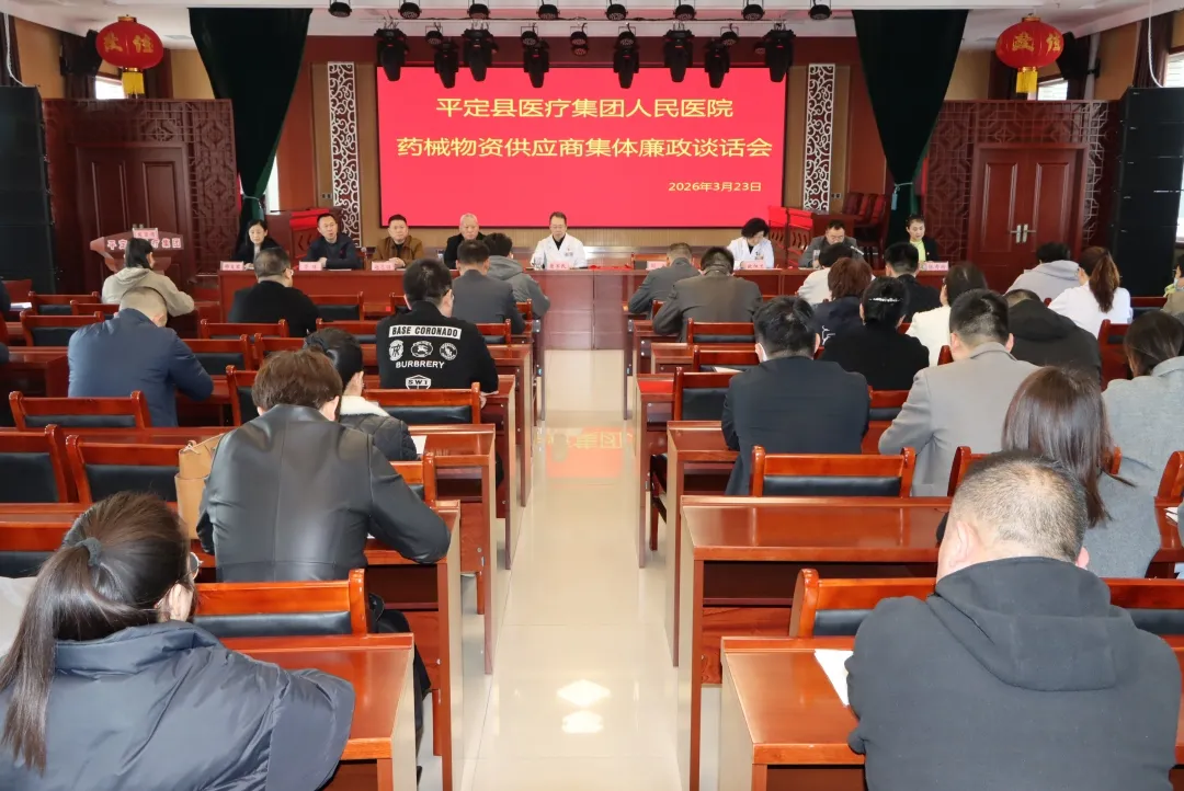 为深入贯彻落实全面从严治党要求,持续推进清廉医院建设,营造风清气正的医疗环境,2026年3月23日,山西省医院协会理事单位——平定县人民医院召开2026年药械物资供应商集体廉政谈话会。平定县医疗集团党委书记贾军民出席。医院党政领导班子成员、党总支委员、职能科室主任及供应商代表参会。集团专职副书记窦海峰主持会议。