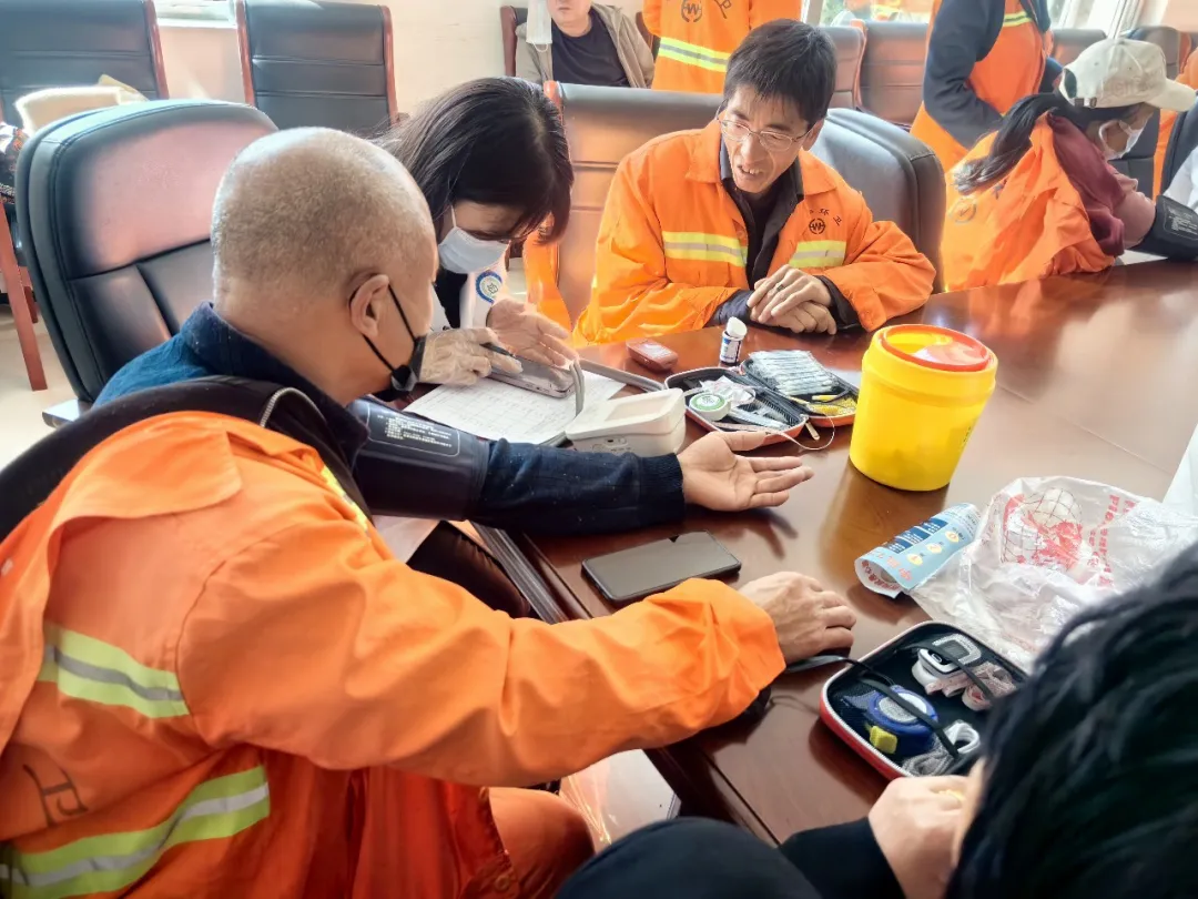 活动摸排环卫工人群体健康风险,实现县环卫队工作人员全覆盖,为后续针对性健康管理提供了数据支撑。医务人员为环卫工人逐一开展血压、血糖、身高体重等基础检查,共筛查出血压异常171人、血糖异常63人,同时提供了糖化血红蛋白检测、中医诊疗等深度健康服务。康复科专家一对一解读体检报告,量身定制个性化健康管理方案;工作人员同步推进家庭医生签约、居民健康档案建档履约,扎实落实基层公共卫生服务。现场还开展心肺复苏急救、心脑血管疾病防治科普培训,发放健康宣传资料,对筛查异常人员进行登记与转诊对接,构建起“筛查—评估—指导—转诊—随访”全链条健康服务闭环。(冯凯歌)