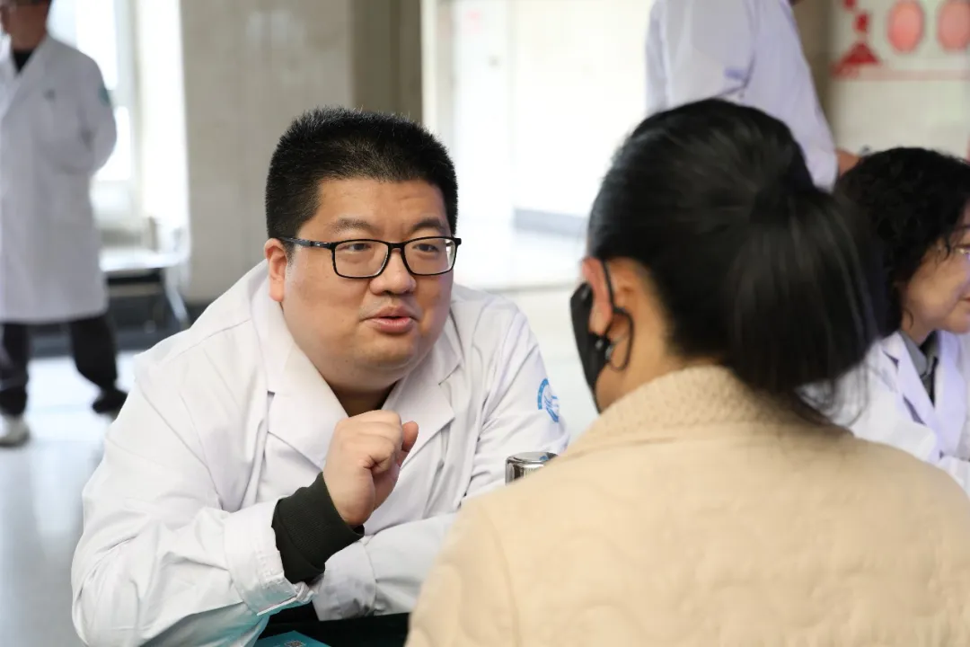 义诊现场,山西省人民医院专家团队耐心询问患者病史,细致查阅病历资料,深入分析病情,悉心解答疑问,围绕诊断、治疗、用药、饮食、保健等方面为患者制定健康方案。河津市人民医院医技系列党支部党员志愿者们主动靠前服务,积极引导群众有序就诊、发放健康科普知识,让党旗在义诊服务一线高高飘扬。山西省人民医院专家团队还深入科室,通过指导、手术带教、专业帮扶等方式,让医护人员和住院患者切实感受到省级专家的精心指导与优质服务。